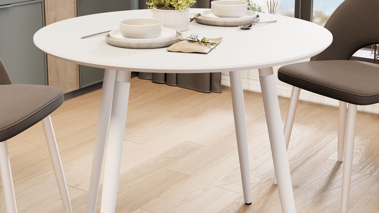 «Оливия» Тип 1 - классический нераздвижной стол на четырех ножках с круглой столешницей. Это удобная и лаконичная модель, которая благодаря своему небольшому размеру позволяет максимально рационально использовать пространство. Стол легко вписывается в различные стили интерьера: от классического до современного скандинавского и стильного лофт.