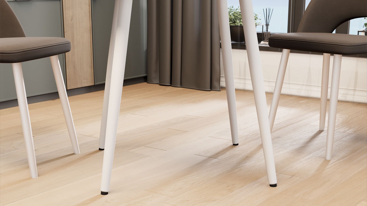 Материалы. Столешница из МДФ 18 мм покрыта эмалью с имитацией шпона, выполненной в стиле древесных пород. Благодаря этому, поверхность столешницы обладает характерной текстурой, что придает мебели ощущение теплоты и уюта. Опоры выполнены из массива древесных пород, обладающего прочностью и уникальным рисунком волокон, что создает эстетическую привлекательность и изысканный внешний вид изделию. Особенность конструкции заключается в том, что каждая деревянная ножка имеет в верхней части специальный металлический элемент, который крепится непосредственно к столешнице и служит надежным соединением.