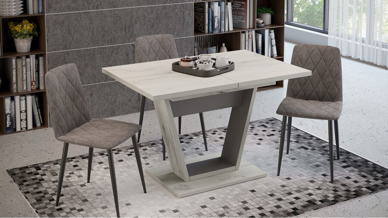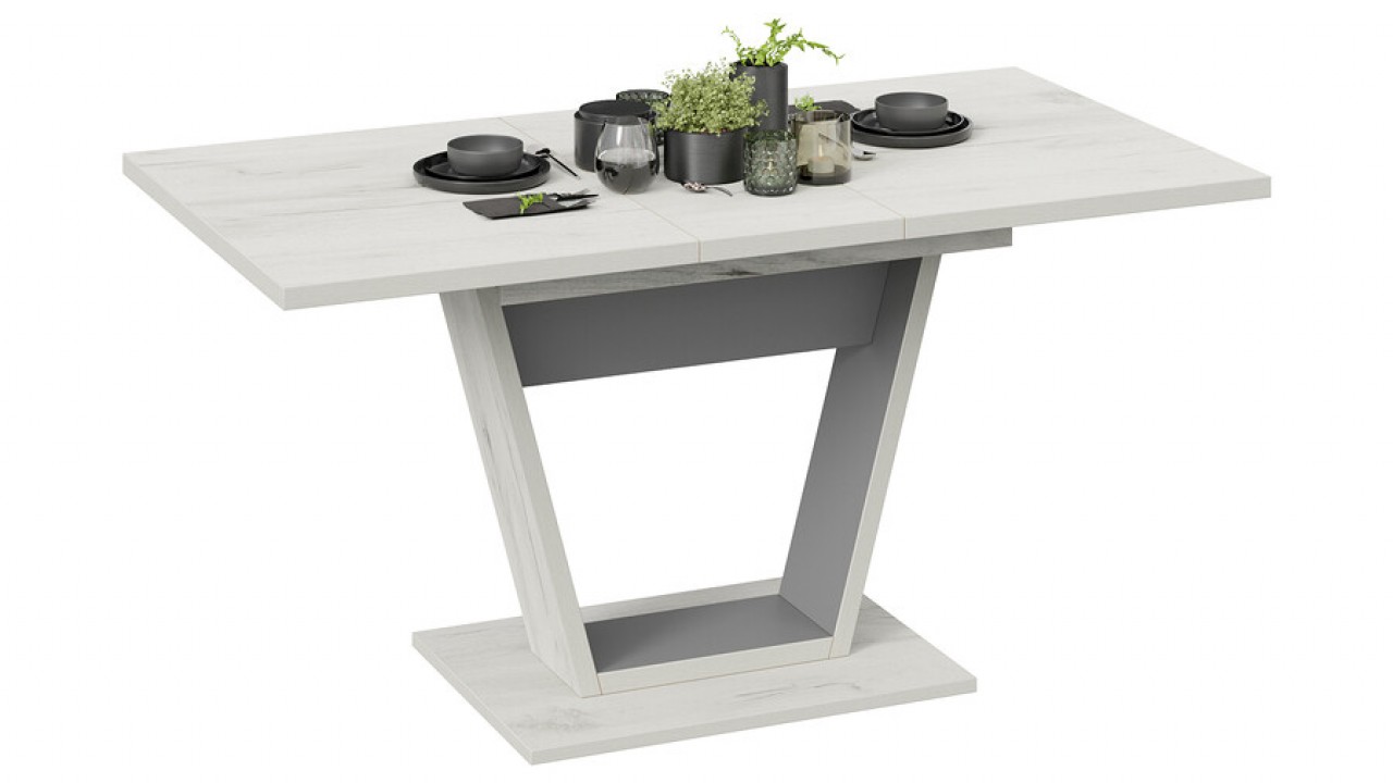 Универсальность. В оформлении модели применяются актуальные варианты декора, что подчёркивает универсальность стола. Модные текстуры «Дуб крафт золотой», «Дуб крафт белый» в сочетании с цветами чёрный и серый графит, придадут ощущение тепла и уюта в кухонном интерьере.