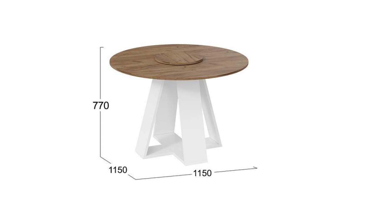 «Райнер» Тип 1 необычный круглый стол с вращающейся центральной частью. Его особенность заключается в том, что крышка на столешнице способна вращаться вокруг своей оси. Это создает впечатление легкости и динамики, придавая столу особую изюминку. Модель отлично впишется в интерьер вашей кухни, выполненной в современном стиле. Минималистический дизайн стола будет гармонично соседствовать с другими элементами интерьера и придавать комнате особый шарм.