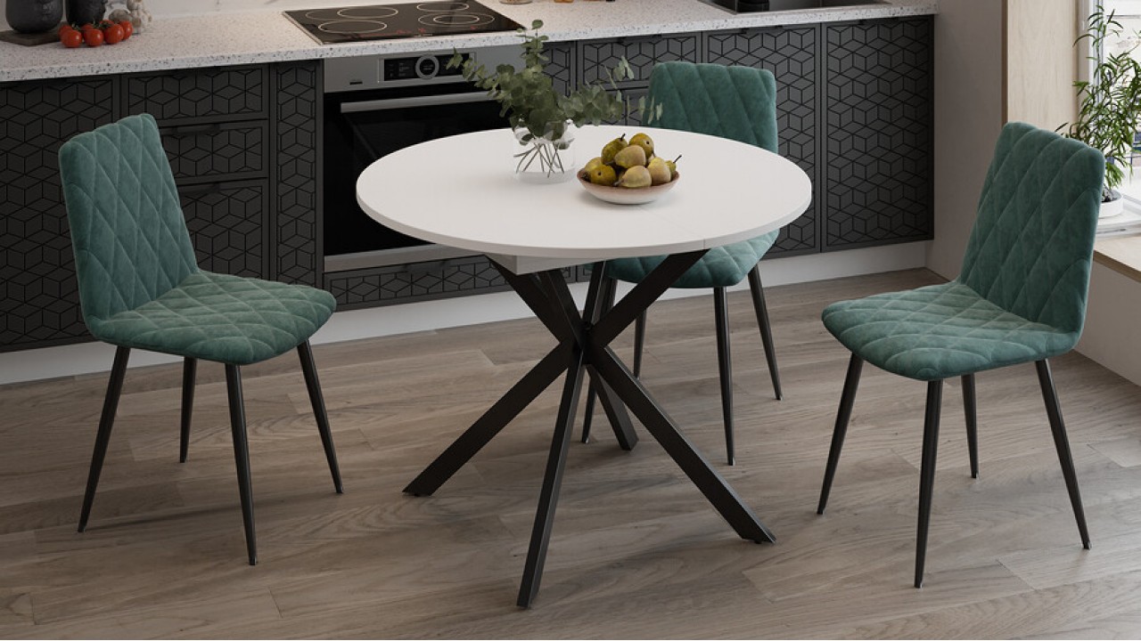 Функциональность. Модель имеет синхронный механизм раздвижения со вставкой «бабочка», которая укладывается вручную. Это выручает в моменты прихода гостей, которых хочется разместить свободно и с комфортом. Дополнительная вставка в цвет столешницы продолжает элегантный образ изделия, делая его целостным и завершенным.