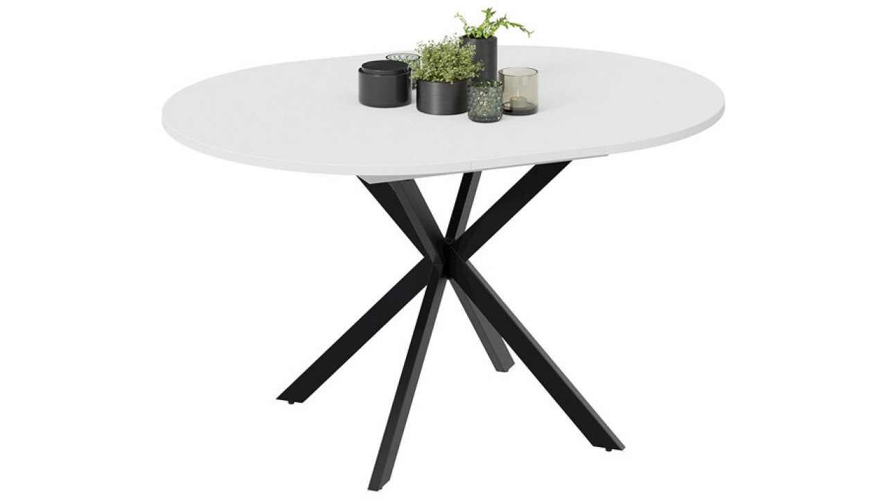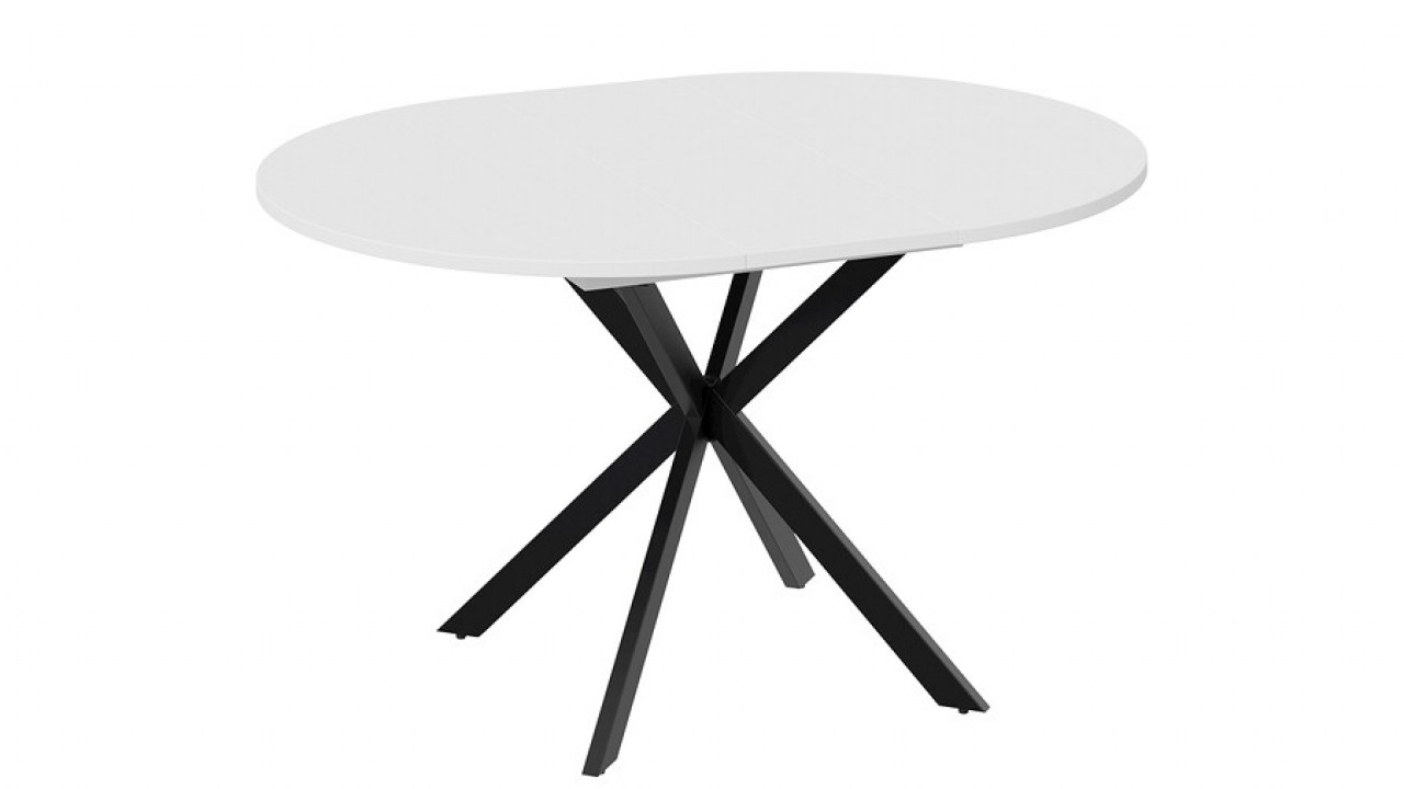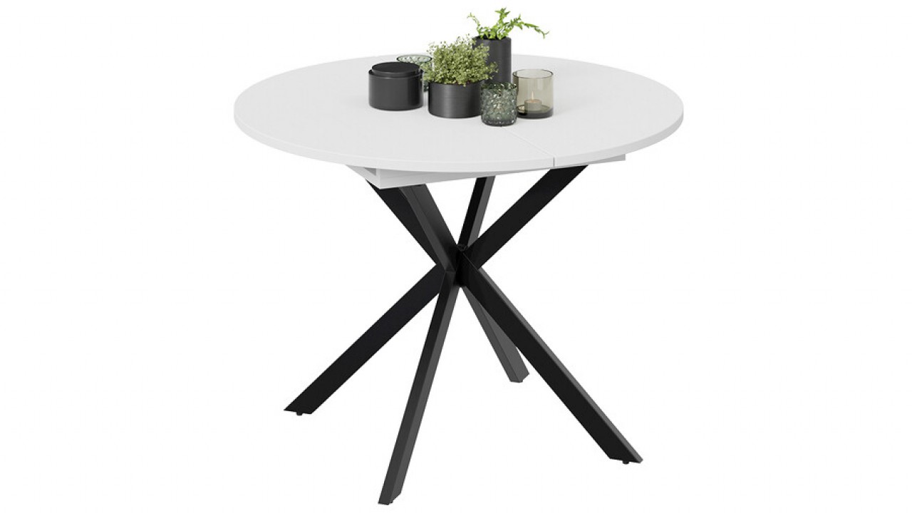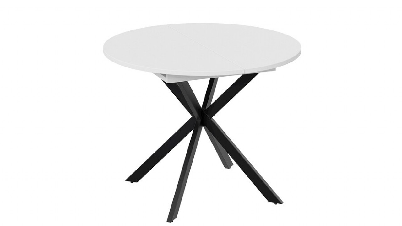 Стильный дизайн. Круглый обеденный стол на перекрещенных ножках смотрится изящно, лаконично и ненавязчиво в любом интерьере. Столешница выполнена из ЛДСП 22 мм. Яркая особенность — это опоры из металла, которые смотрятся привлекательно и стильно. Ножки окрашены порошковой краской в цвета «Белый муар» и «Черный муар».