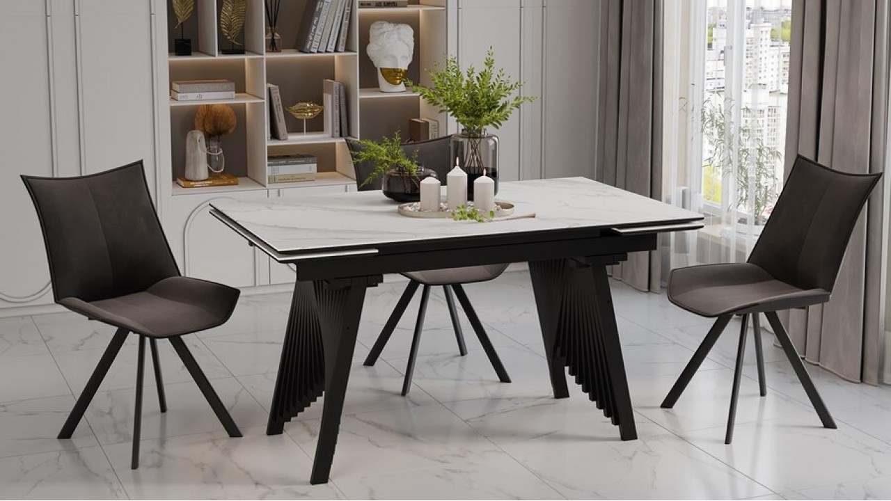 «Шелдон» Тип 1 – элегантный обеденный стол с керамогранитом, отличается выразительным и запоминающимся исполнением. Модель привлекает внимание продуманным дизайном с безусловным акцентом на подстолье интересной формы, которая придает ему особый шарм, позволяя создать интерьер в вашем собственном стиле.