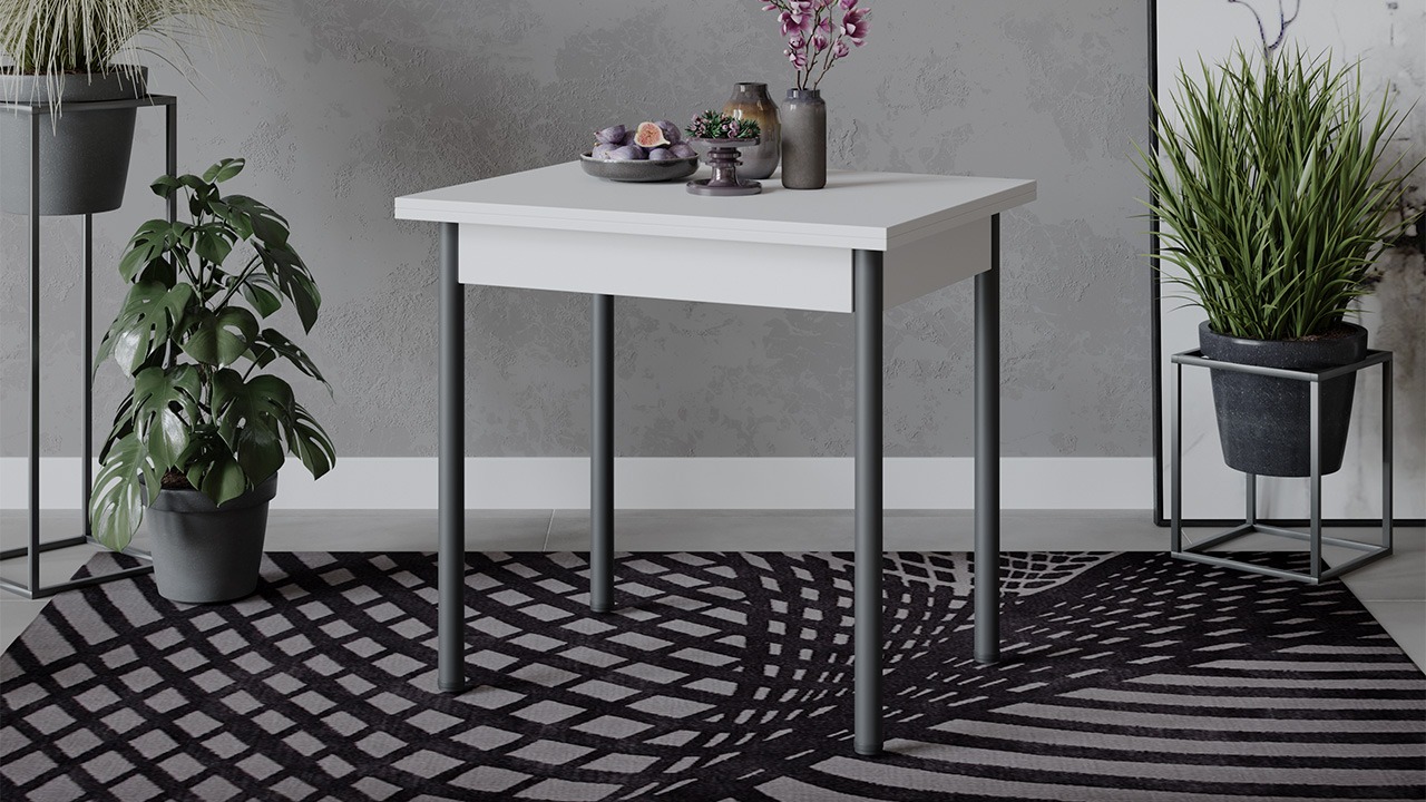 Функциональность. Модель имеет поворотно-раскладной механизм трансформации. В случае прихода гостей длина стола увеличивается вдвое: для этого нужно развернуть столешницу на 90 градусов и опустить верхнее крыло.