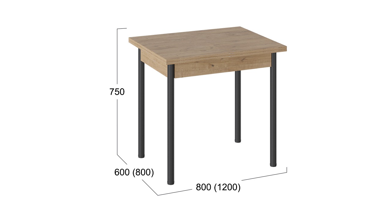 Габаритный размер (ШхГхВ): 800(1200)х600(800)х750(766) мм