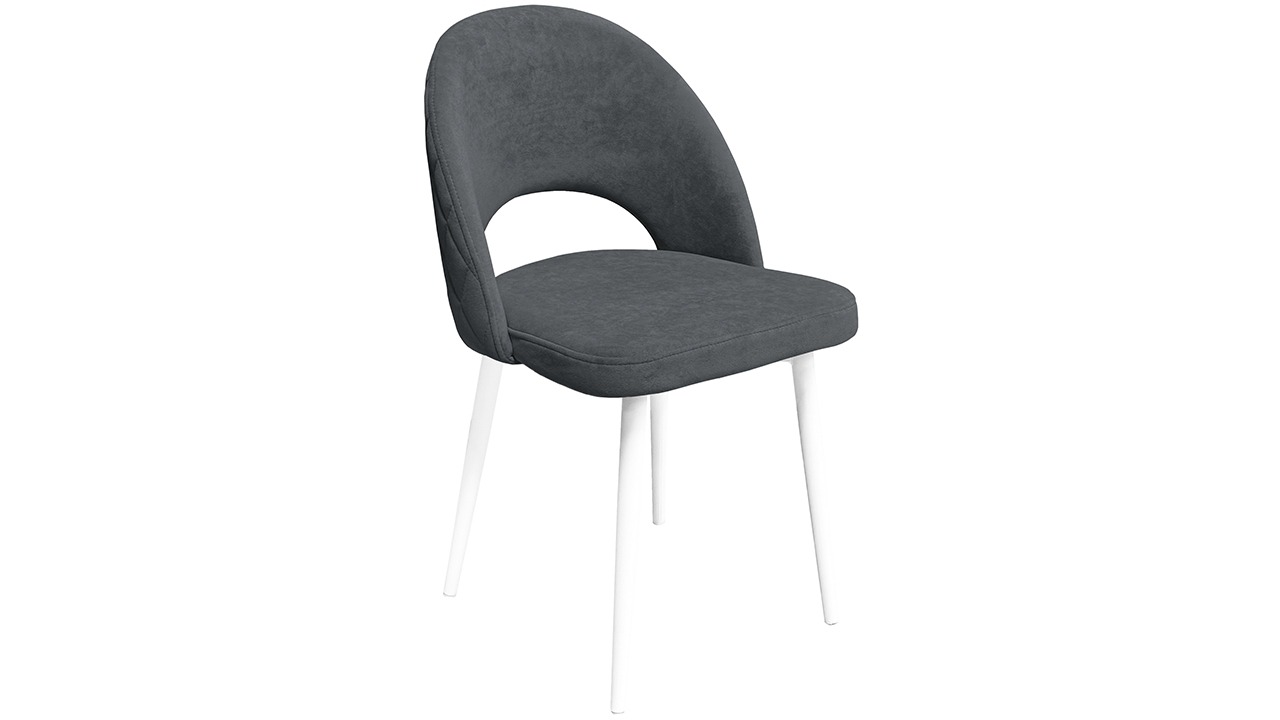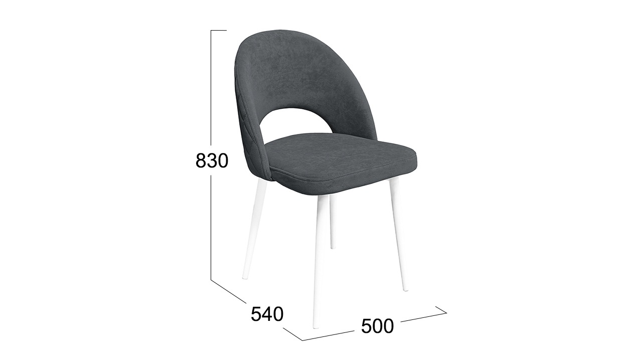 Материалы. Опора изделия выполнена из металла, окрашена в матовые глубокие цвета «Черный муар» и «Белый муар», которые сейчас очень популярны. На ножках предусмотрены пластиковые заглушки, которые придают стулу дополнительную устойчивость и защищают пол от царапин. Основой мягкого элемента служит фанера и ППУ. Для обивки стула используется велюр DREAM.