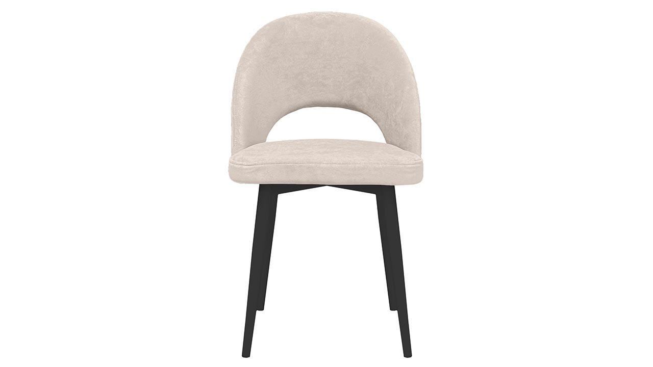 Материалы. Опора изделия выполнена из металла, окрашена в матовые глубокие цвета «Черный муар» и «Белый муар», которые сейчас очень популярны. На ножках предусмотрены пластиковые заглушки, которые придают стулу дополнительную устойчивость и защищают пол от царапин. Основой мягкого элемента служит фанера и ППУ. Для обивки стула используется велюр DREAM.
