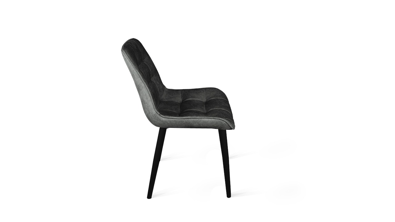 Материал исполнения. Обивка сиденья и спинки выполнена из велюра, который имеет приятную бархатистую поверхность и обладает хорошей износостойкостью и долговечностью. Оттенки обивки отражают все свежие и современные веяния мебельного рынка. Сочетание естественной фактуры мрамора с мягкой тактильной поверхностью велюра, подчеркнутой сложными природными оттенками, создает интересный образ коллекции. Разнообразная цветовая гамма и благородная текстура материала хорошо гармонирует со многими стилями интерьера. Фактура обивки выглядит еще выразительнее за счет декоративной простежки квадратами на фронтальной поверхности чехла. Надежная опора — это металлические ножки с порошковым покрытием. Они расставлены под углом, что гарантирует максимальную устойчивость конструкции. Каркас окрашен в цвета «Белый муар» и «Черный муар», которые сейчас очень популярны. На ножках предусмотрены пластиковые заглушки, которые придают стулу дополнительную устойчивость и защищают пол от царапин.