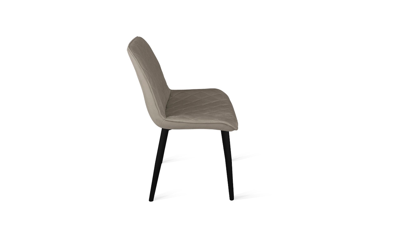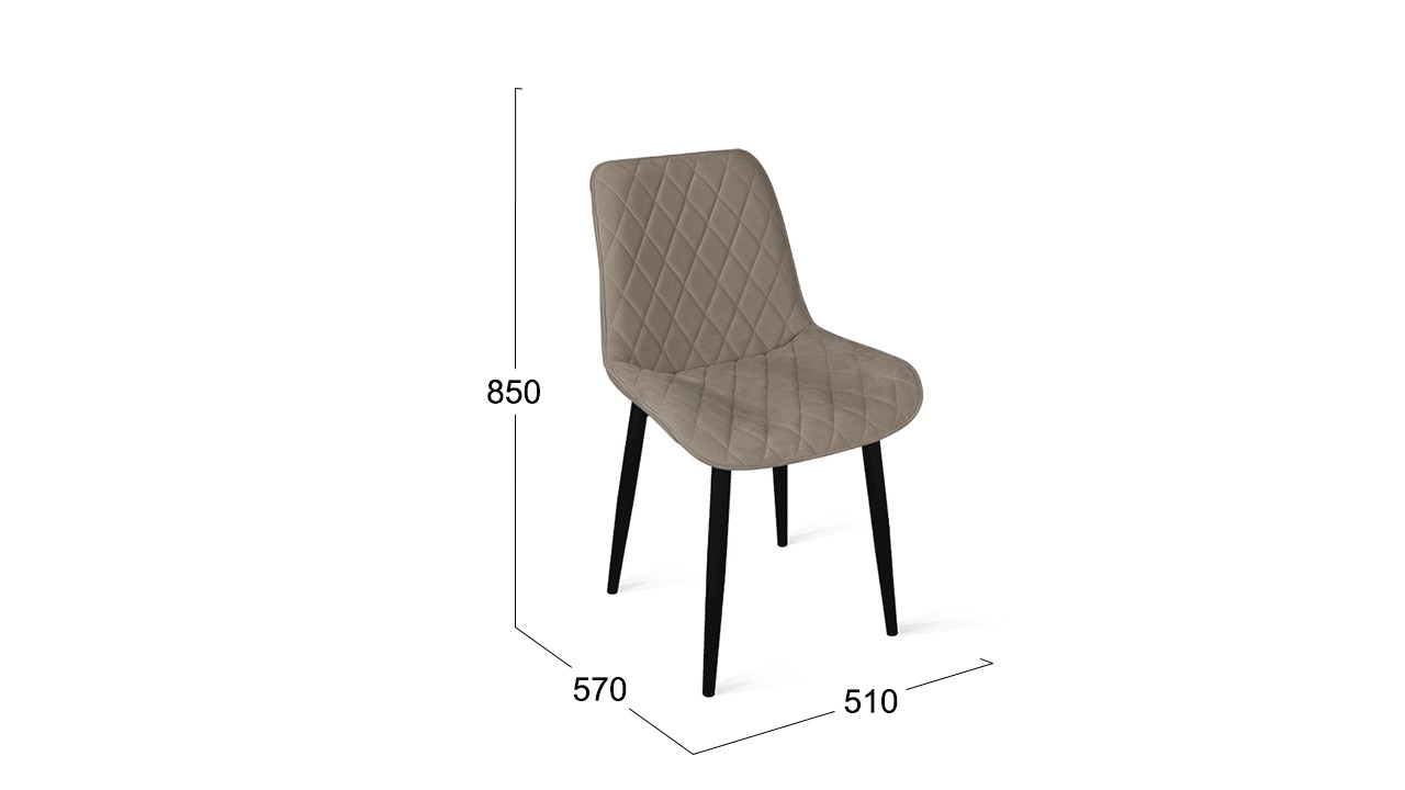 Материал исполнения. Эффектная и практичная обивка из велюра Velutto подарит приятные тактильные ощущения и будет неприхотлива в уходе и эксплуатации. Разнообразная цветовая гамма и благородная текстура материала хорошо гармонирует со многими стилями интерьера. Фактура обивки выглядит еще выразительнее за счет декоративной простежки ромбами на фронтальной поверхности чехла. Надежная опора — это металлические ножки с порошковым покрытием. Они расставлены под углом, что гарантирует максимальную устойчивость конструкции. Каркас окрашен в цвета «Белый муар» и «Черный муар», которые сейчас очень популярны. На ножках предусмотрены пластиковые заглушки, которые придают стулу дополнительную устойчивость и защищают пол от царапин.