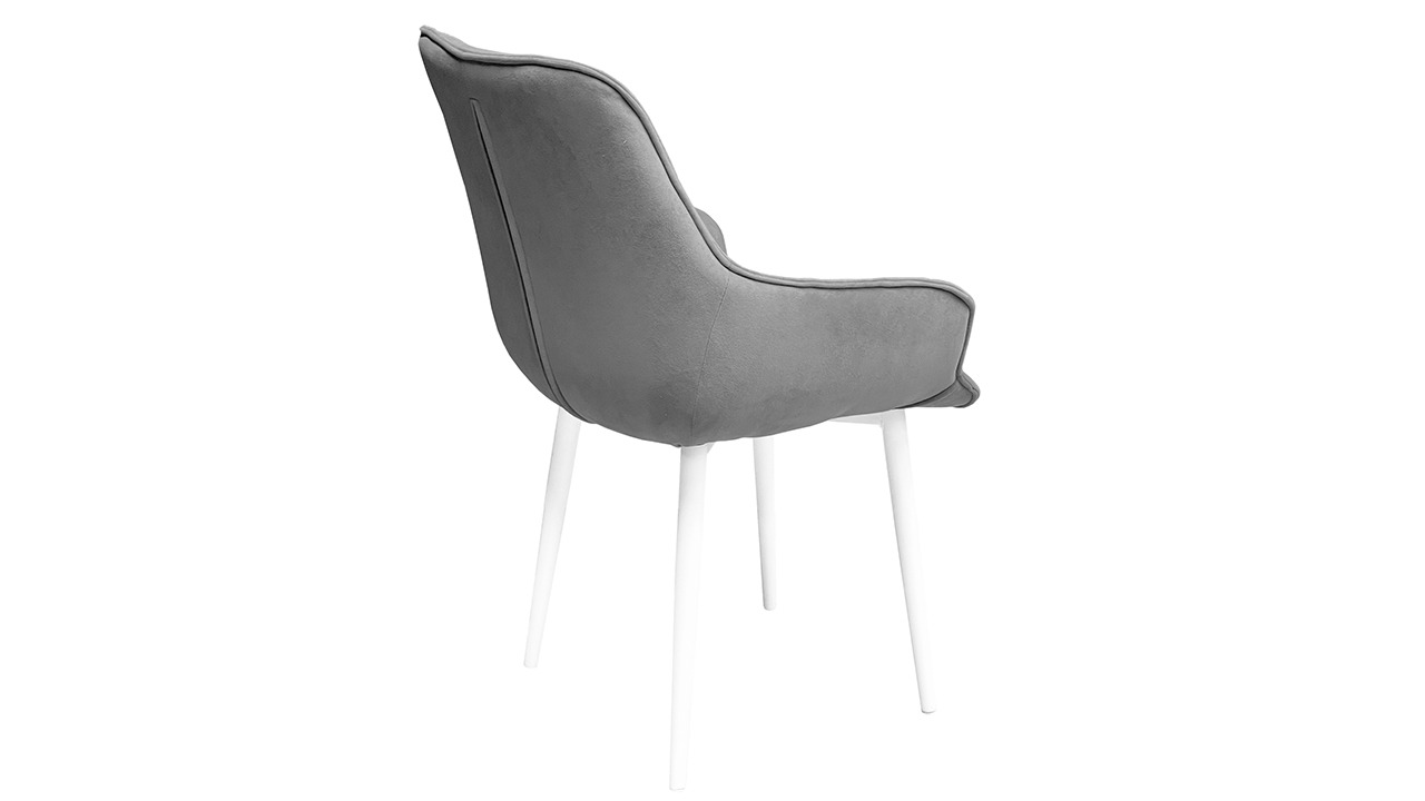 Материалы. Опора изделия выполнена из металла, окрашена в матовые глубокие цвета «Черный муар» и «Белый муар», которые сейчас очень популярны. На ножках предусмотрены пластиковые заглушки, которые придают стулу дополнительную устойчивость и защищают пол от царапин. Основой мягкого элемента служит фанера и ППУ. Для обивки стула используется велюр DREAM.