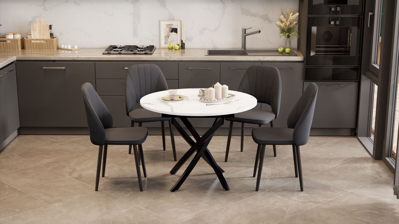 Современное цветовое оформление. Новинка представлена в декорах с глянцевой, матовой белой и черной, с рисунком «под мрамор» столешницей, которые выглядят презентабельно, стильно и элегантно.