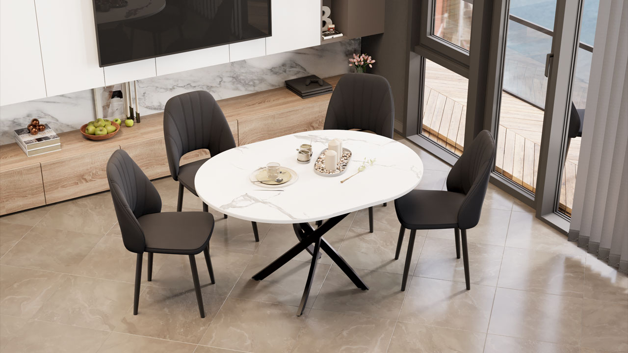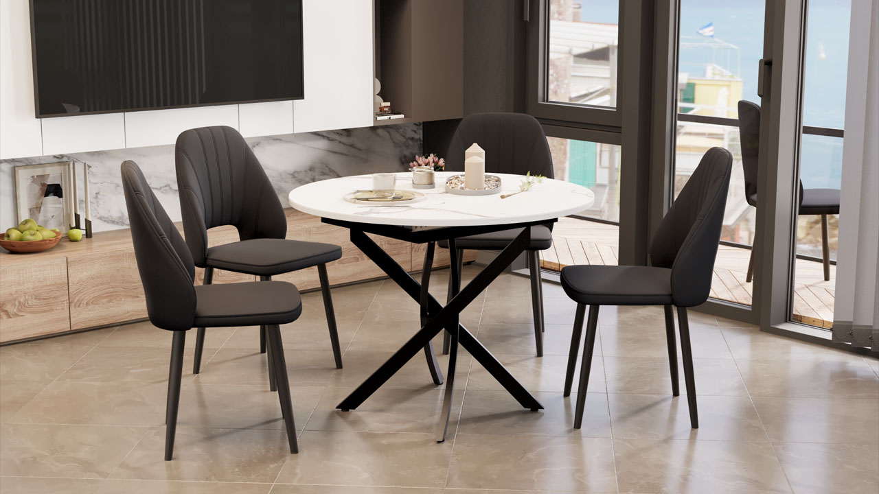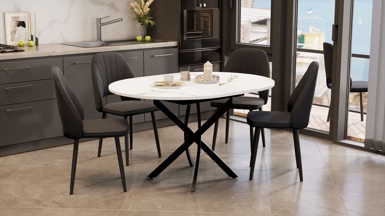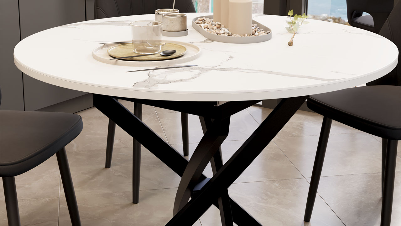 Стол обеденный «Дуглас» Тип 1 привлекает свое внимание элегантной, круглой формой столешницы в сочетании с запоминающимся дизайном металлических опор. В новинке соединены модные тенденции, минимализм и лаконичность - с одной стороны, и практичность вместе с удобством и комфортом – с другой.