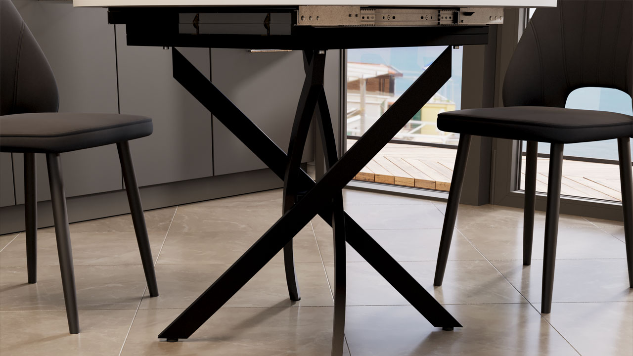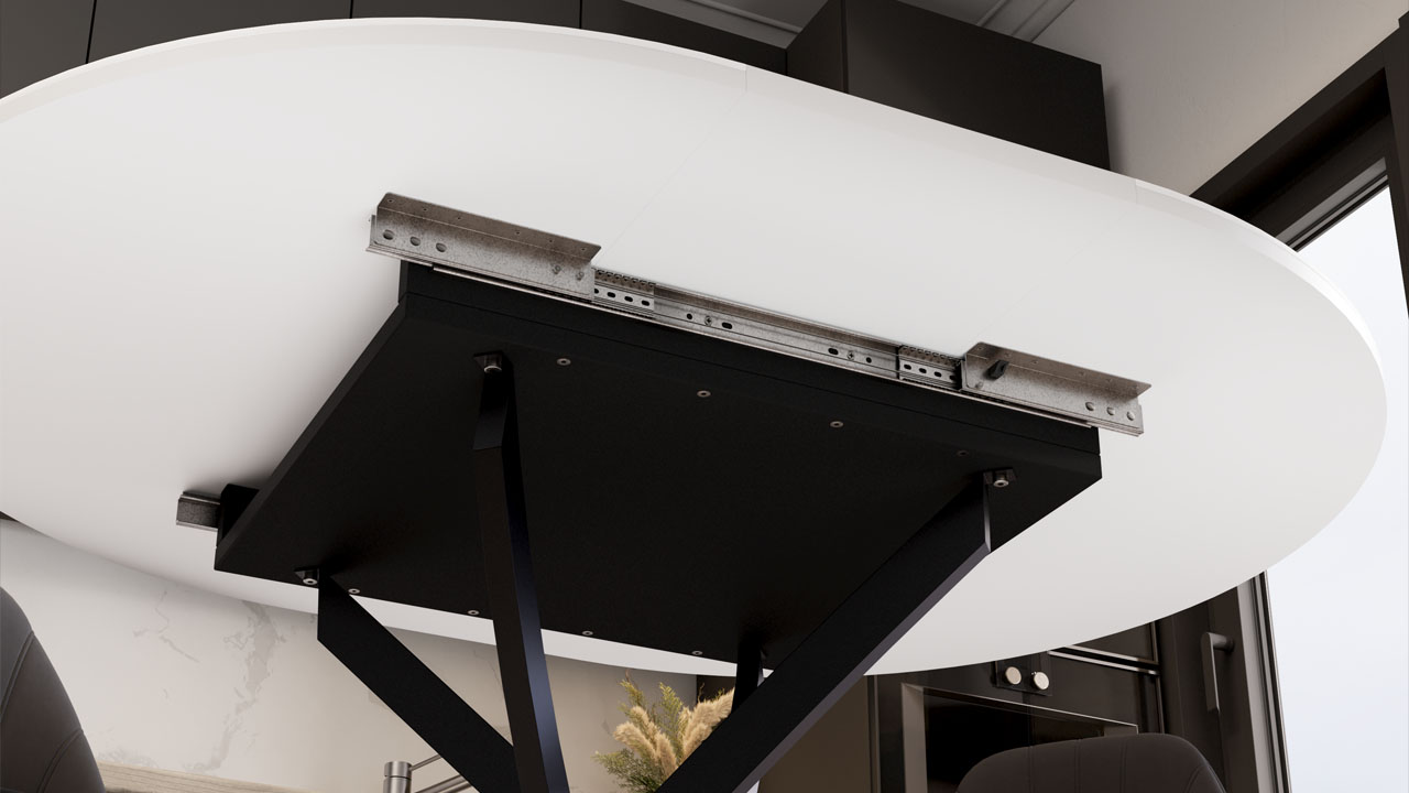 Функциональность. Стол имеет надежный ручной синхронный механизм раздвижения со вставкой «бабочка», которая укладывается вручную. Это выручает в моменты прихода гостей, которых хочется разместить свободно и с комфортом. В основании ножек есть регулируемые подпятники для хорошей устойчивости и отсутствия скольжения.