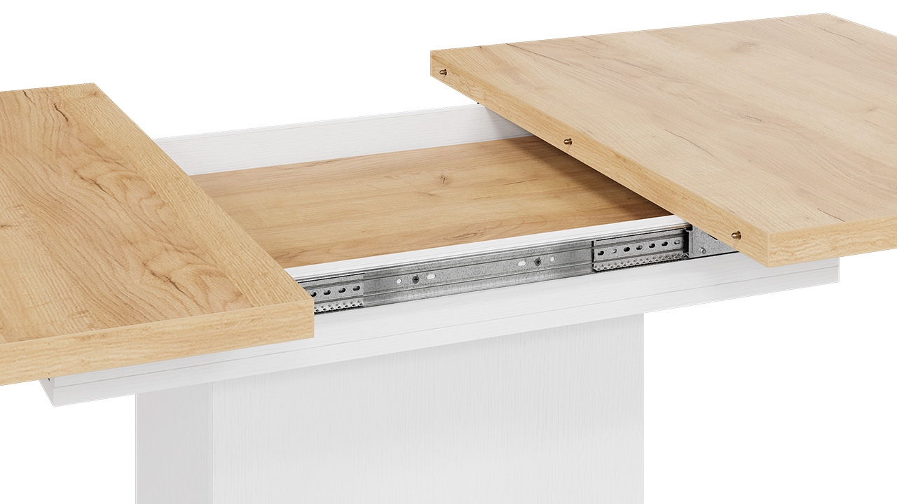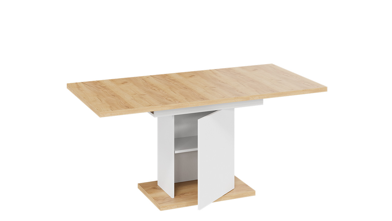 Функциональность. Стол «Детройт» Тип 4 имеет надежный ручной синхронный механизм раздвижения со вставкой, которая укладывается вручную. Это выручает в моменты прихода гостей, которых хочется разместить свободно и с комфортом. Наша новинка удивит Вас своей практичностью. Конструкция опоры этой модели предусматривает наличие ниши с полкой для хранения необходимых предметов за дверцами, открывающимися легким нажатием руки.