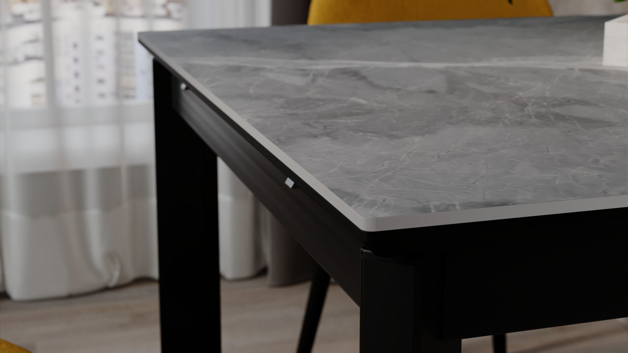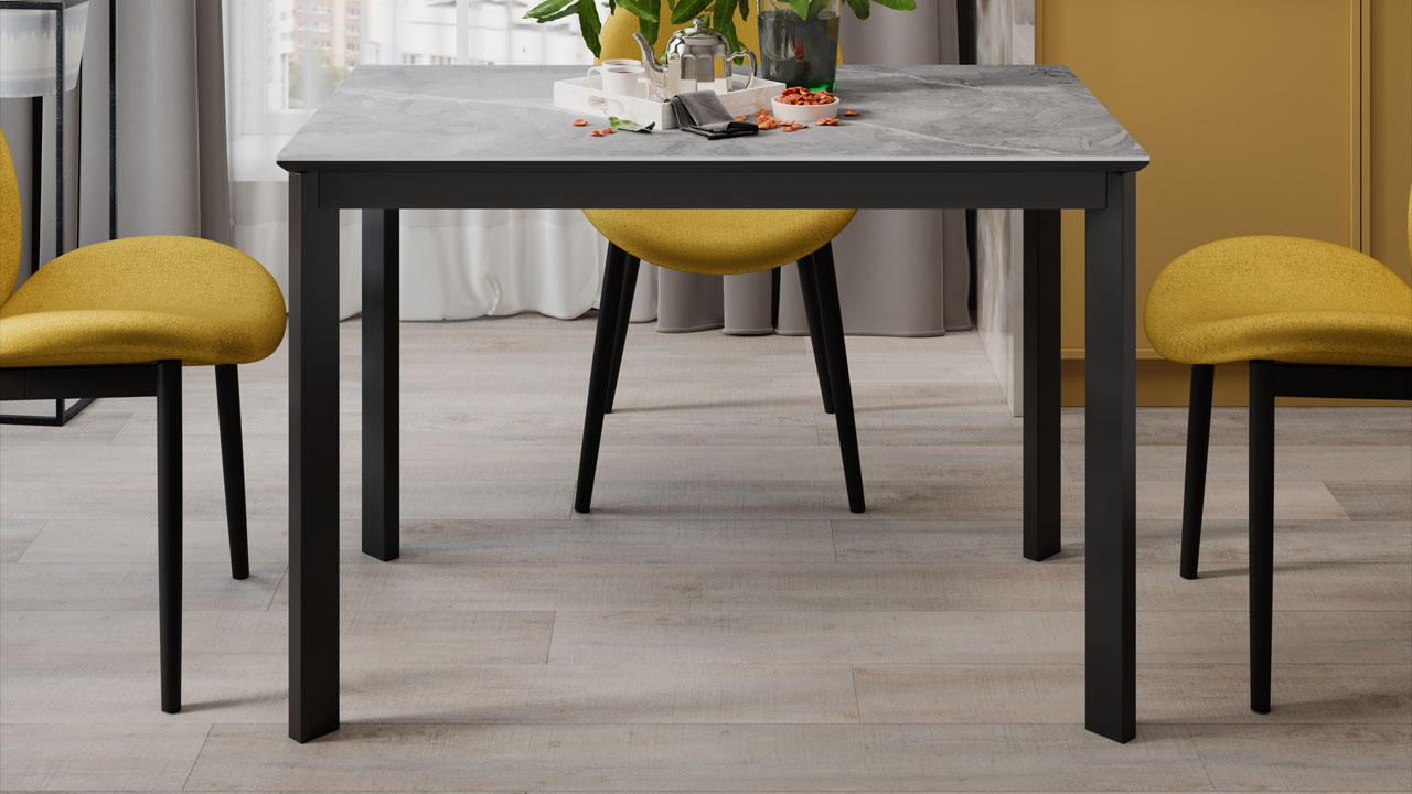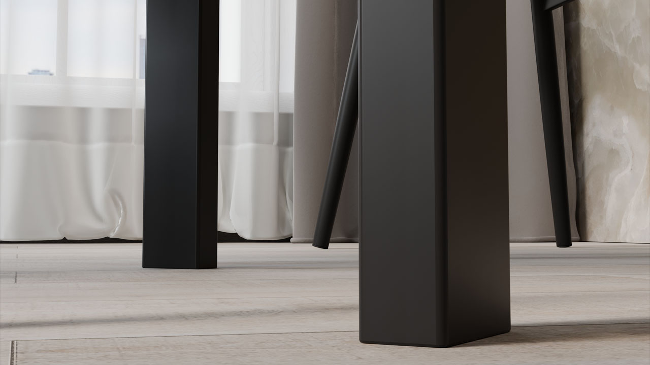 Материалы. Столешница данной модели изготовлена из МДФ 16 мм и керамогранита 6 мм. Керамогранит отличается высокой прочностью, долговечностью, надежностью и термостойкостью. Он не требует особого ухода и не подвержен повреждениям при регулярном использовании. Опора выполнена из металла и окрашена порошковой краской «Черный муар».