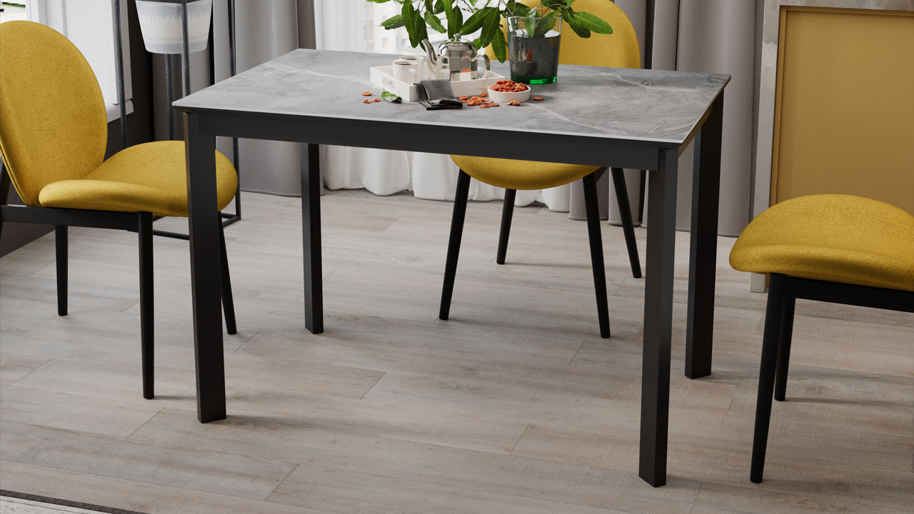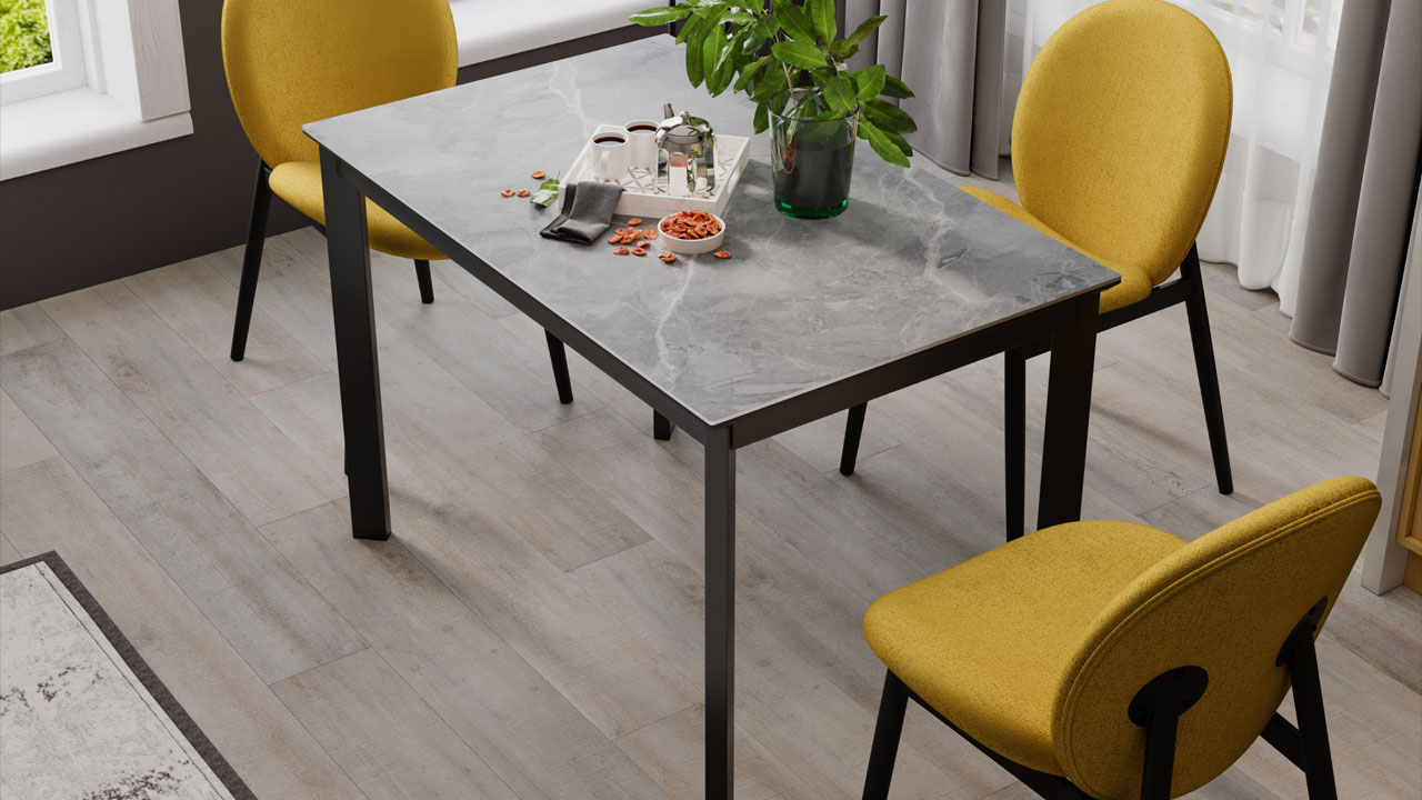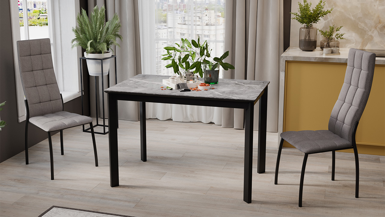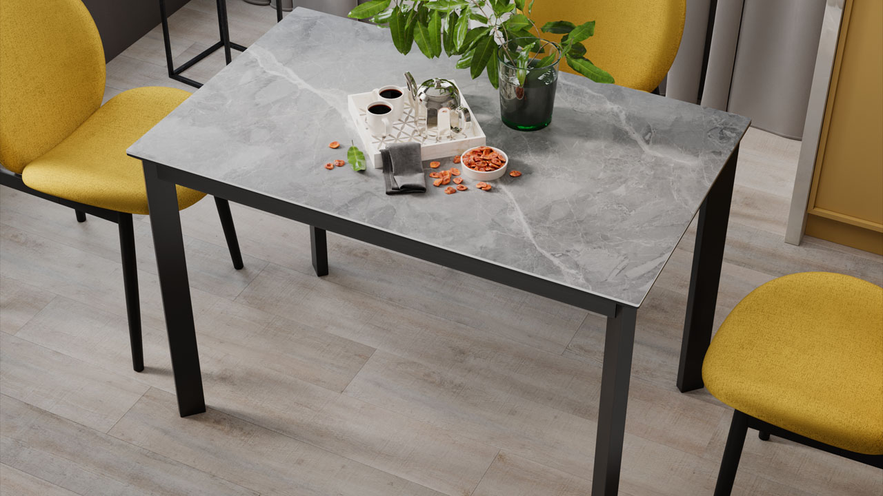 Материалы. Столешница данной модели изготовлена из МДФ 16 мм и керамогранита 6 мм. Керамогранит отличается высокой прочностью, долговечностью, надежностью и термостойкостью. Он не требует особого ухода и не подвержен повреждениям при регулярном использовании. Опора выполнена из металла и окрашена порошковой краской «Черный муар».
