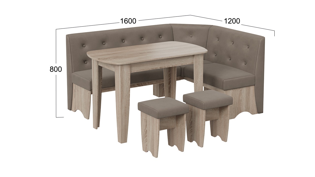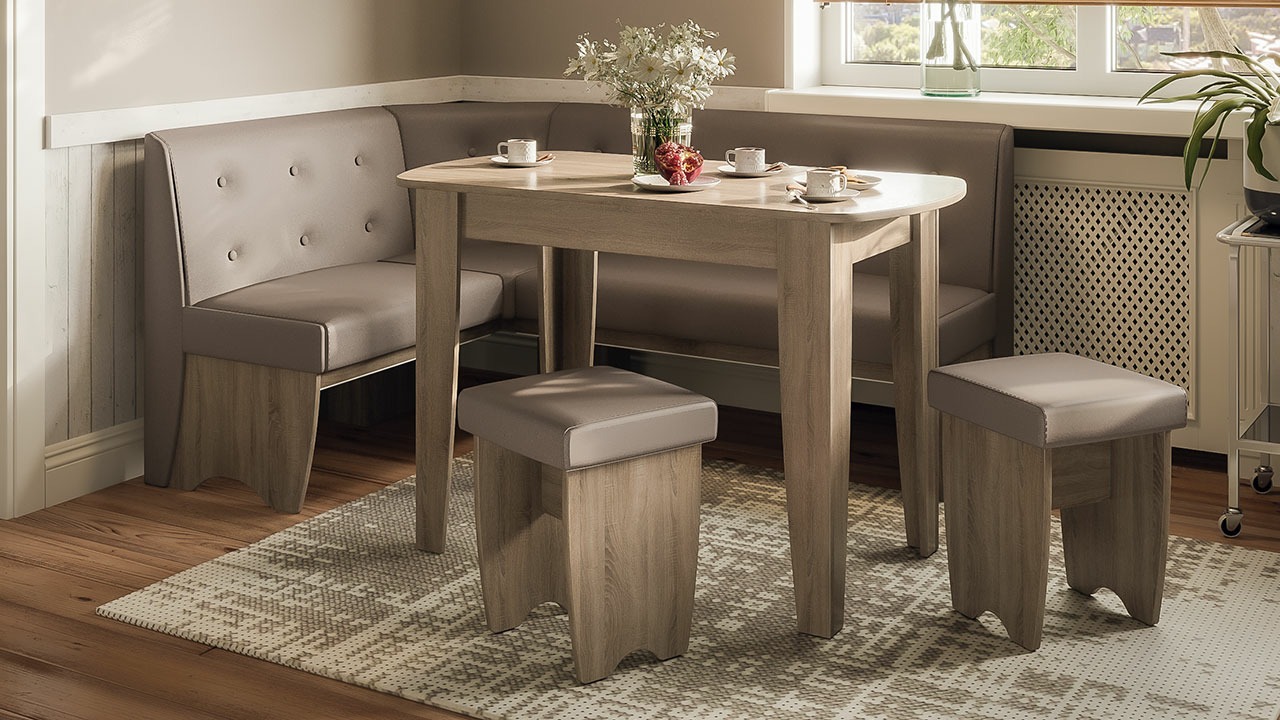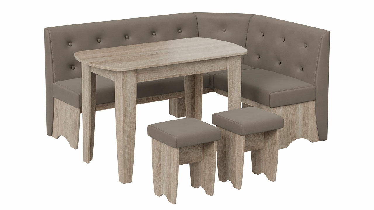В любимом доме важно создать уют во всех помещениях, включая кухню. Для этой комнаты подойдет практичный дизайн, но желательно, чтобы он был стильным и оригинальным. Со всеми поставленными задачами успешно справится наш уголок «Барселона», в комплекте которого уже имеются стол и табуреты.