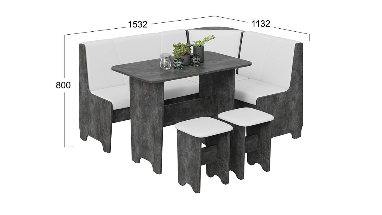 Размер угловой скамьи: 1532х1132х800 мм