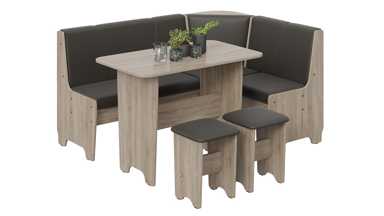 Универсальность. Сборка скамьи в этом наборе возможна как на левую, так и на правую сторону. Поэтому уголок «Техас» станет хорошим вариантом для приобретения, ведь расположить его с легкостью можно будет в любой планировке.