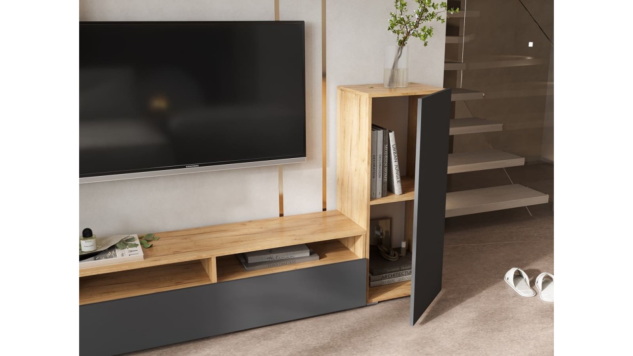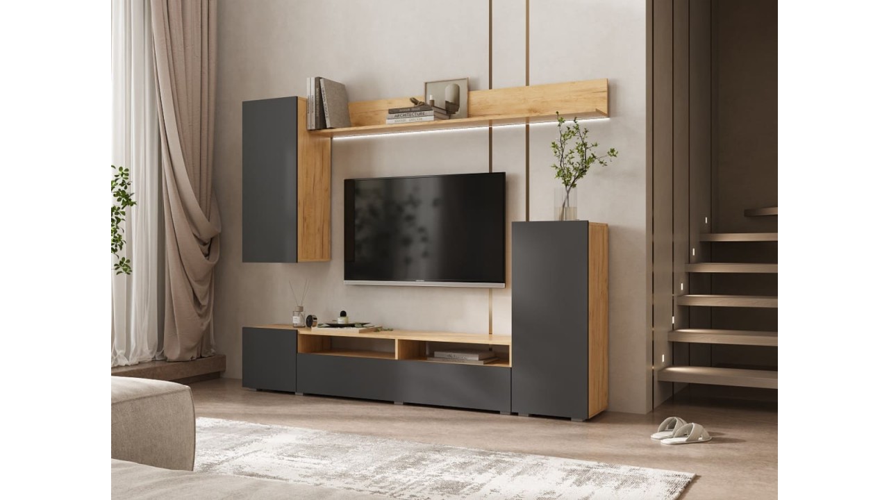 Главная отличительная особенность гостиной "Верона" в том, что корпус и фасады представлены в двух современных цветах. Это сочетание эффектно дополняет интерьер, делая его стильным.