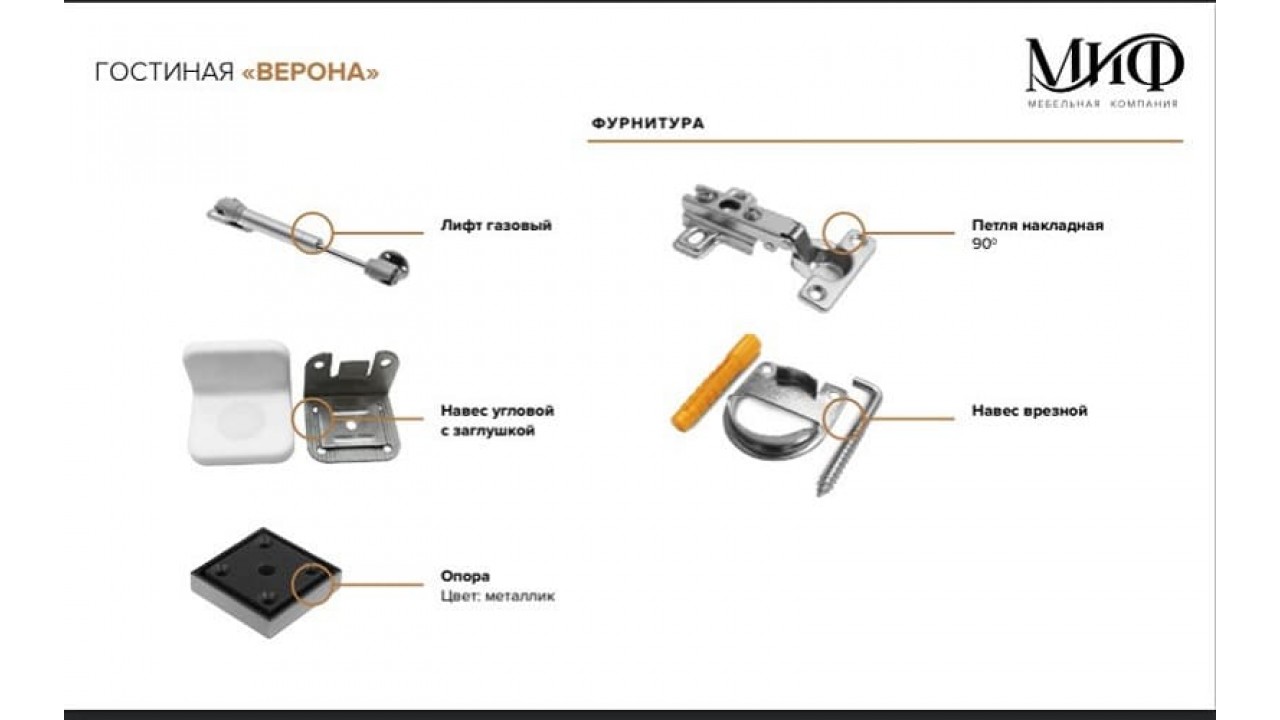 Фурнитура (мебельные петли, винты конфирмат, шурупы, и т.д.).