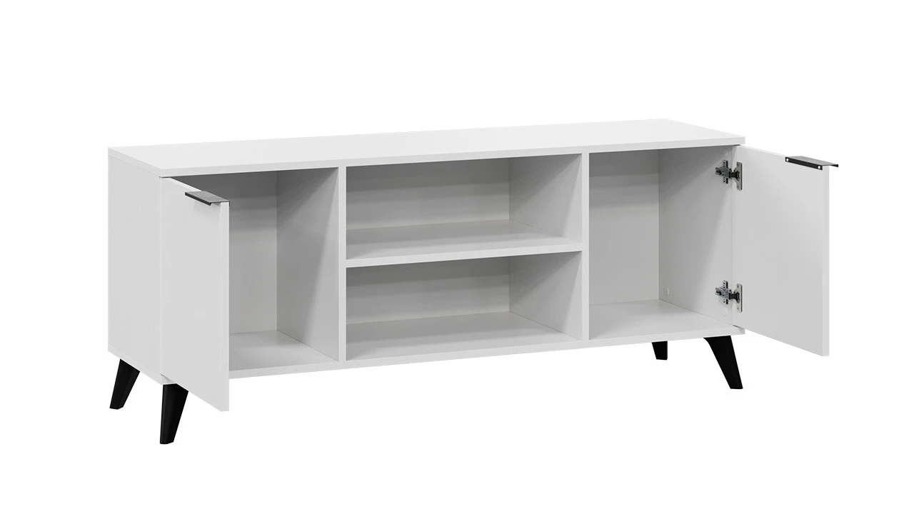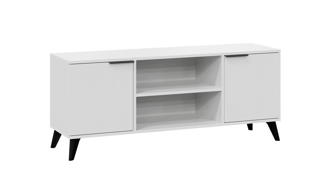 Тумба под ТВ «Агата» Исп.2 с опорами Черный матовый, Белый Ясень – 1 шт.