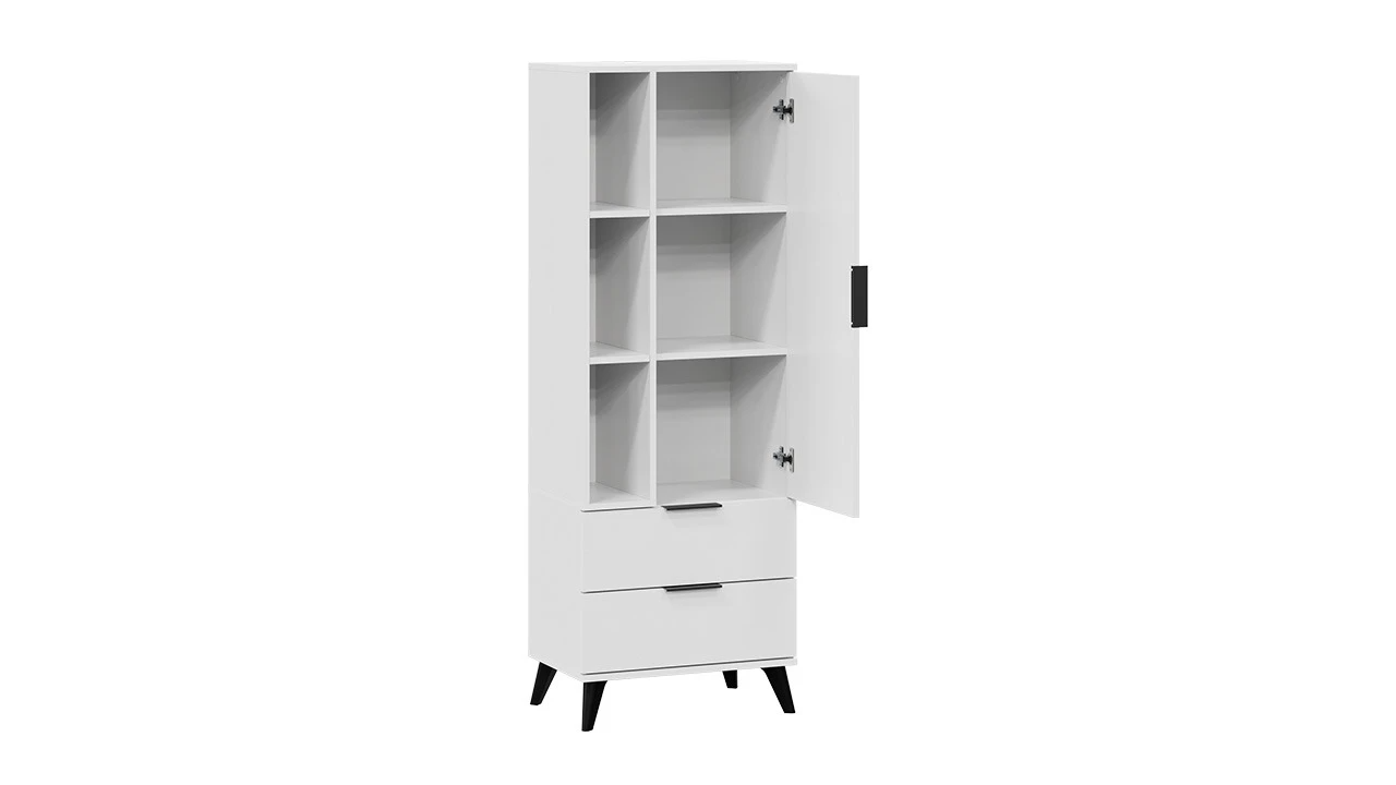 Шкаф для посуды «Агата» Исп.2 с опорами Черный матовый, Белый Ясень – 1 шт.