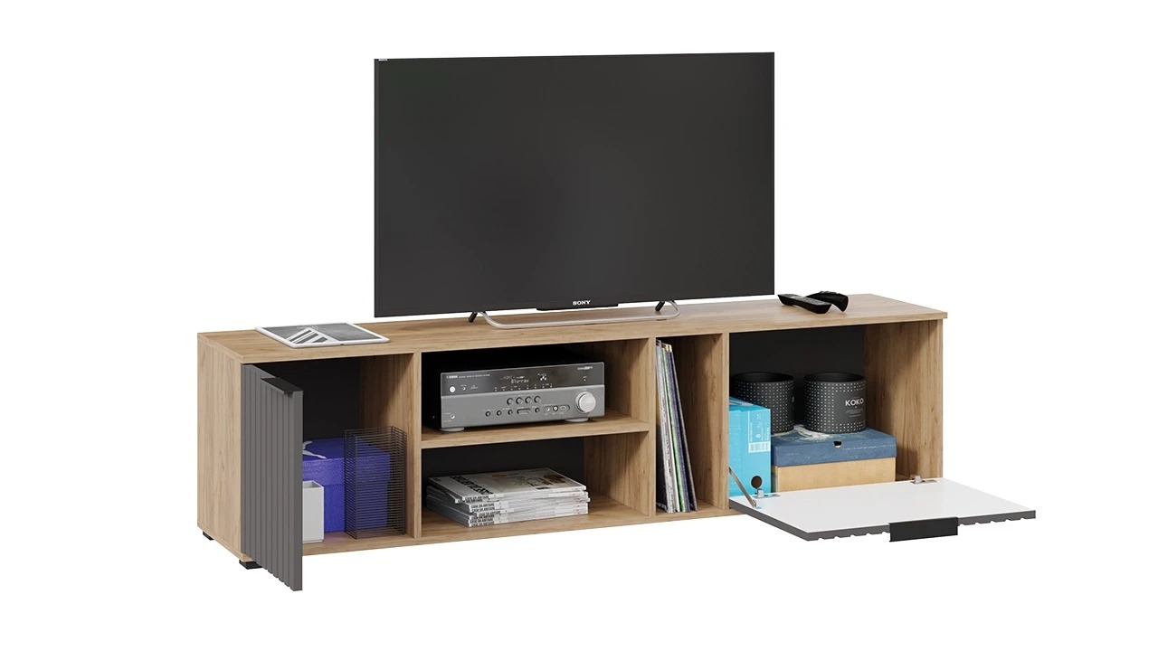 Тумба под ТВ «Хилтон» - 413.11 Дуб Крафт золотой, Графит матовый – 1 шт.
