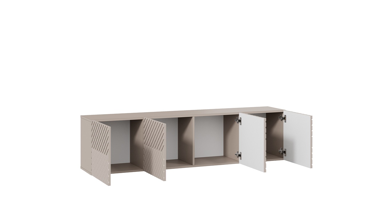 Наполнение и фурнитура. За привлекательными фасадами, которые открываются с помощью системы push-to-open, расположены четыре вместительные ниши, что позволяет разместить необходимые предметы и аппаратуру.