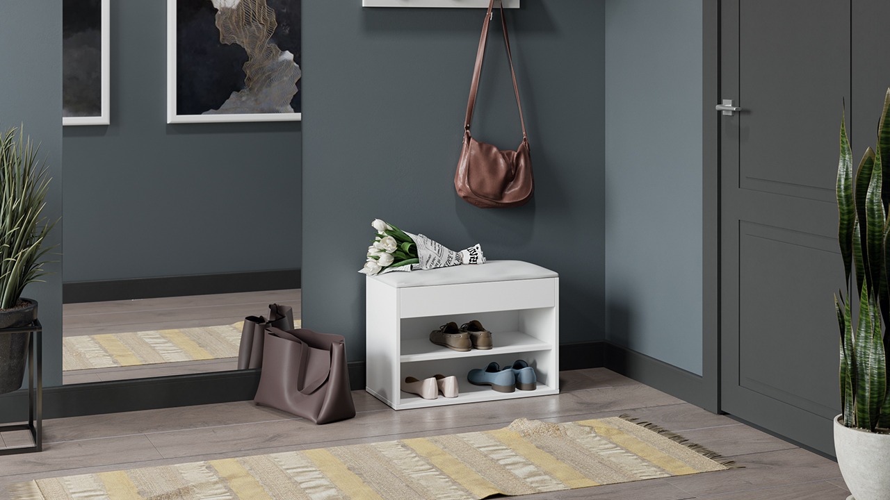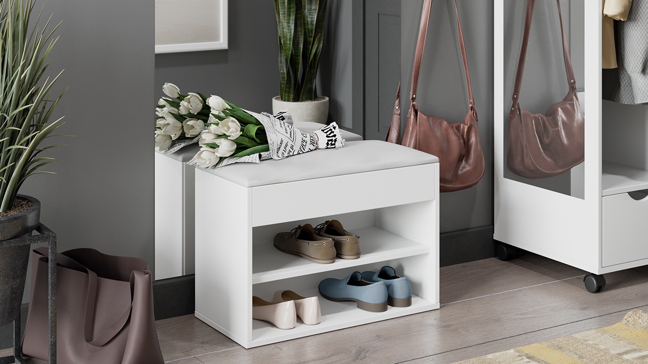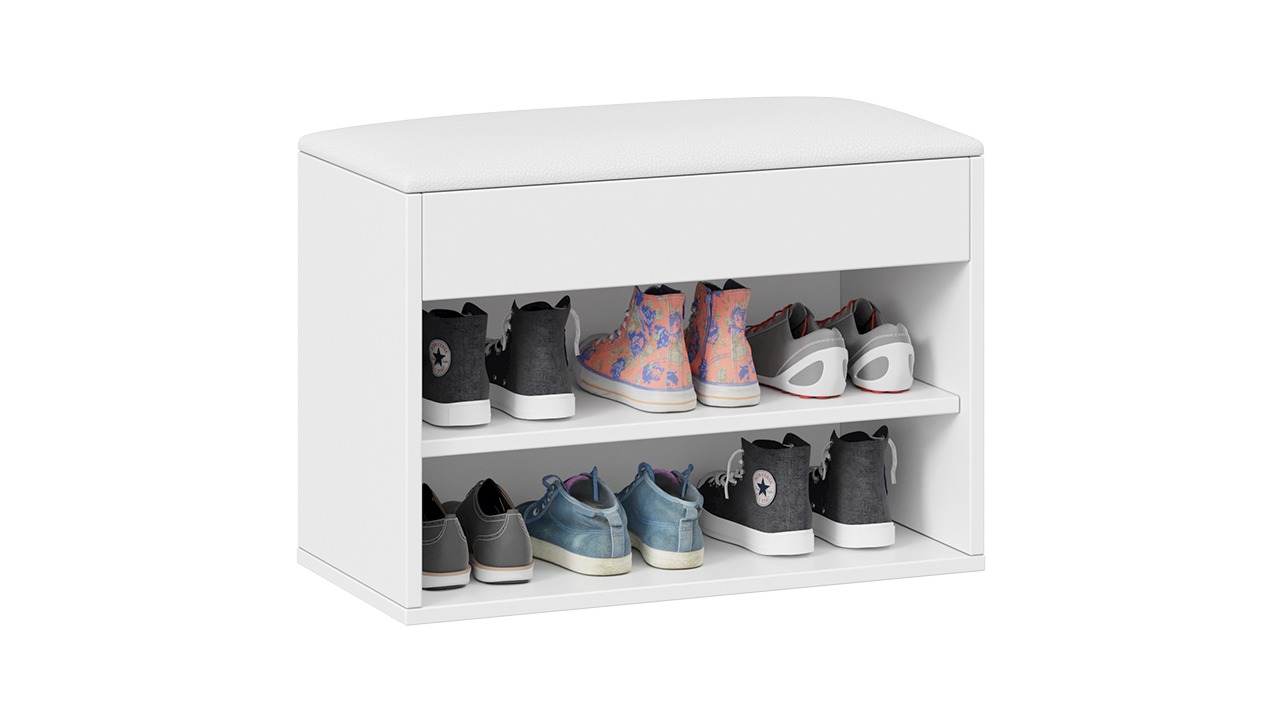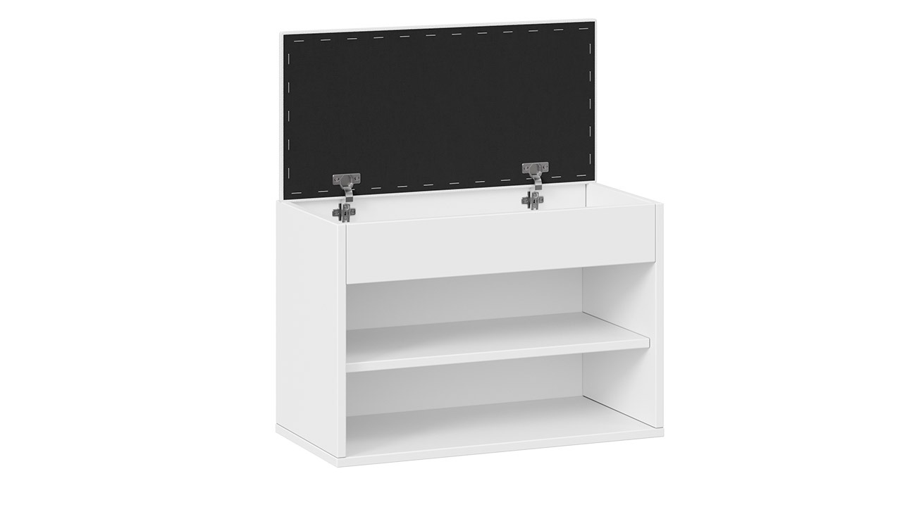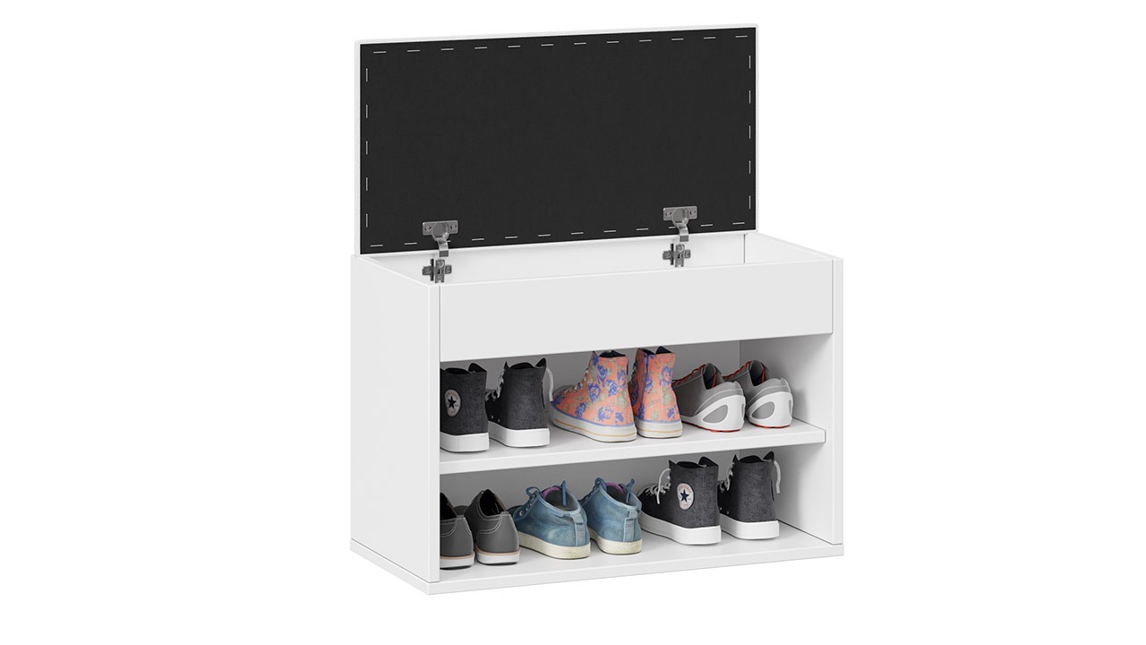 Функциональность. Тумба для обуви имеет открытую нишу для бережного хранения обуви и место под откидной крышкой. Данное пространство можно использовать для хранения обувных аксессуаров и различных мелочей, что без сомнений является преимуществом новинки.
