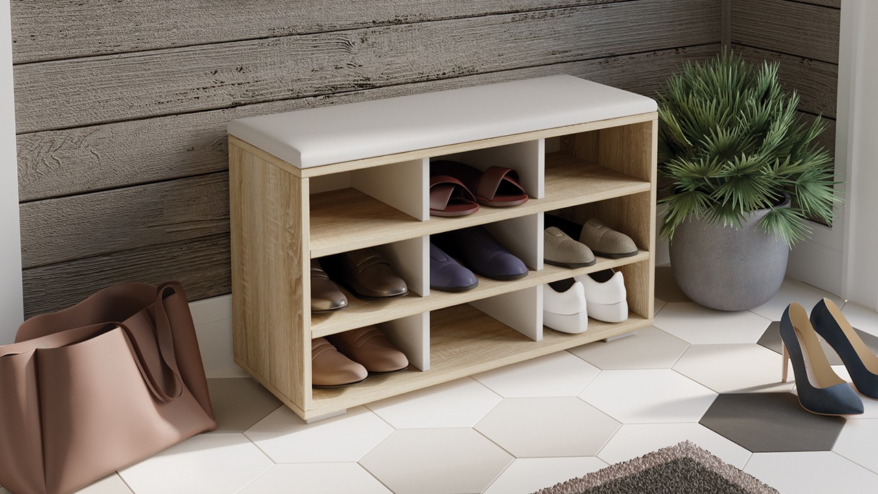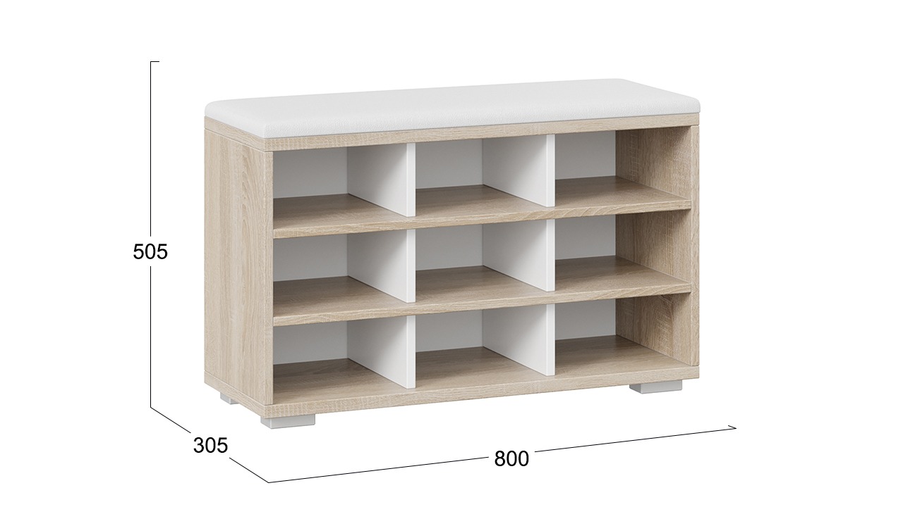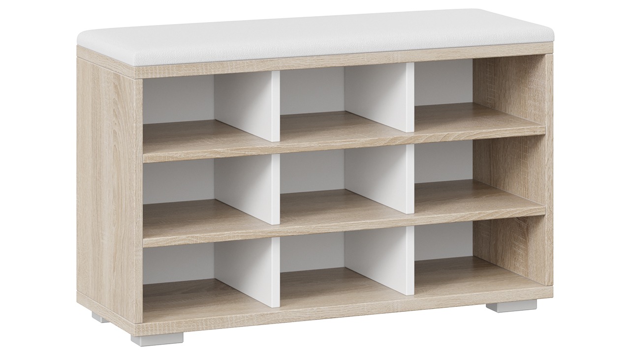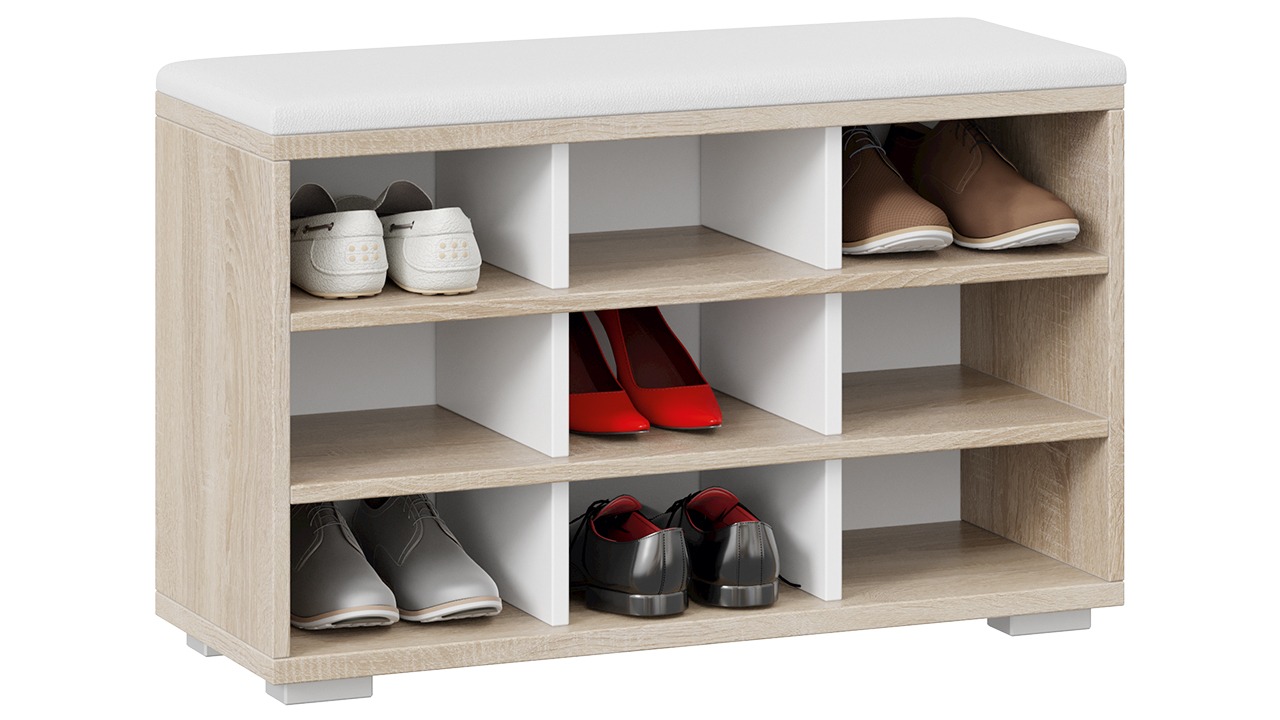 Функциональность. Модель оснащена открытыми полками для обуви, что позволяет быстро найти нужную пару, не тратя лишнего времени. Для удобства эксплуатации тумба оборудована мягким сиденьем, тем самым не только добавит уюта, но и сделает процесс переобувания более комфортным.