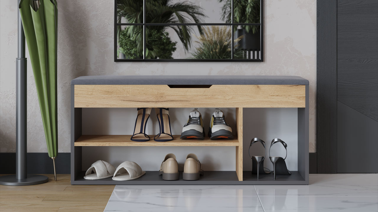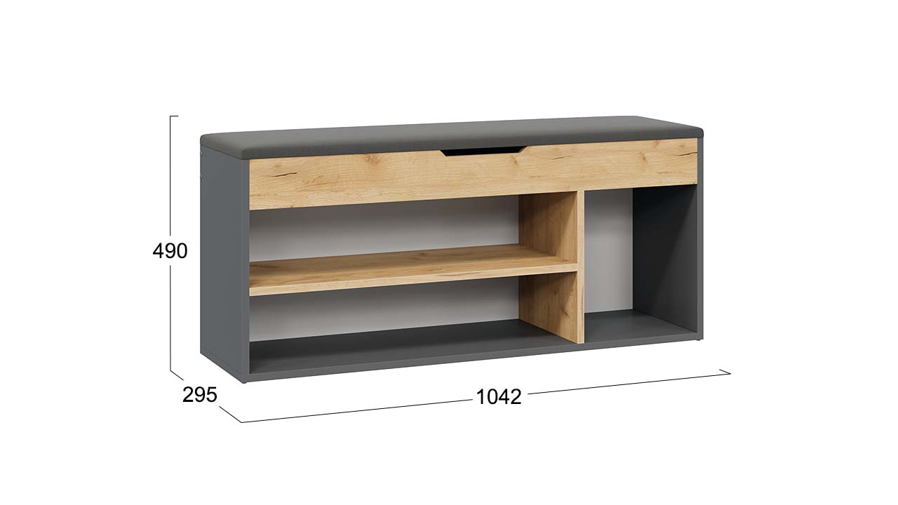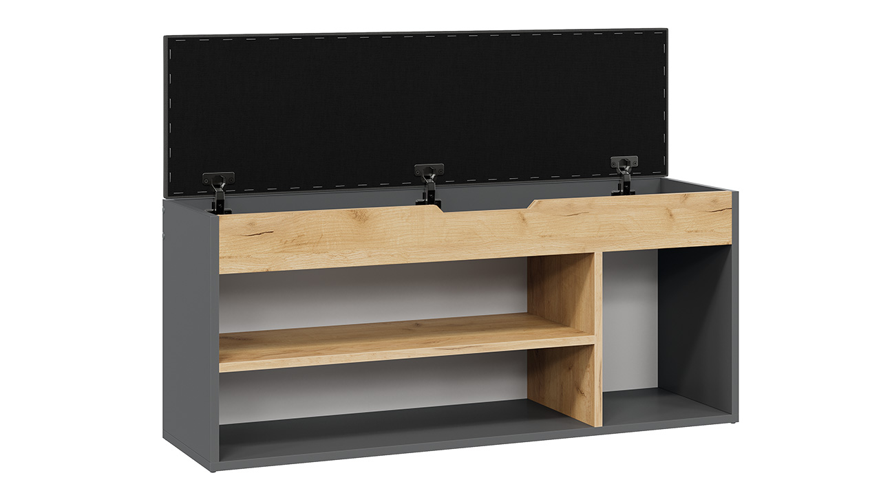 Функциональность. Подъемное сиденье открывает доступ к внутренней части тумбы, предназначенной для хранения бытовых принадлежностей. Наличие открытых полок позволяет хранить обувь в доступной форме, облегчая выбор нужной пары и экономя ваше время. Для удобства эксплуатации тумба оборудована мягким сиденьем, которое сделает процесс переобувания более комфортным.
