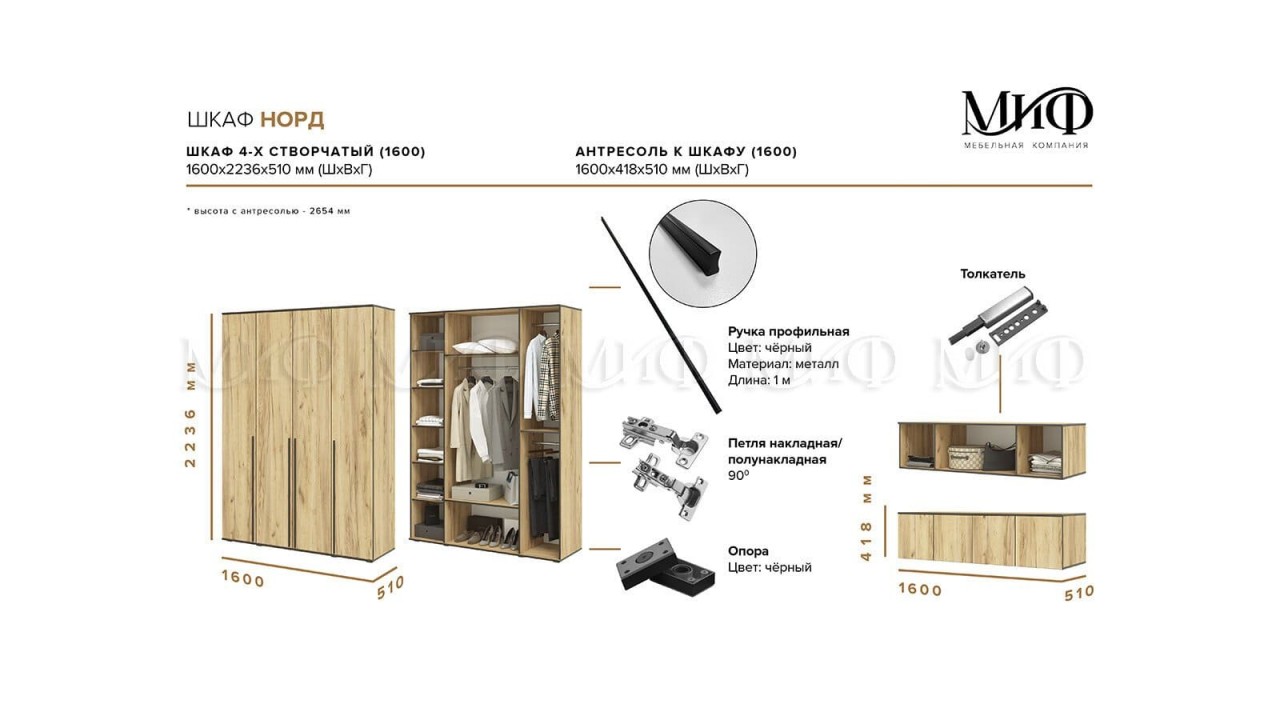 | Габаритная высота418 | Габаритная глубина510 | Габаритная ширина1600 |