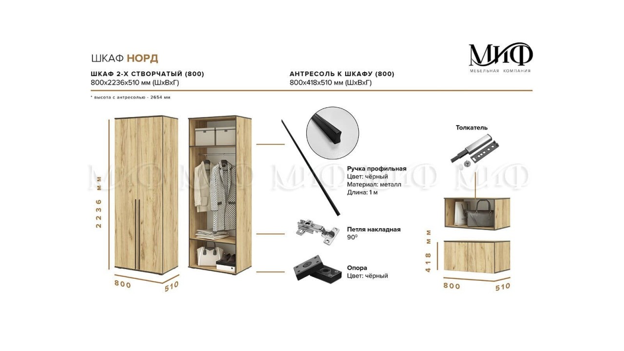 | Габаритная высота418 | Габаритная глубина510 | Габаритная ширина800 |
