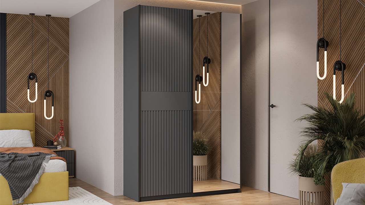 | Тип фасадаГлухой/Зеркало | Цвет ручкиЧерный | Цвет фасадаГрафит матовый |