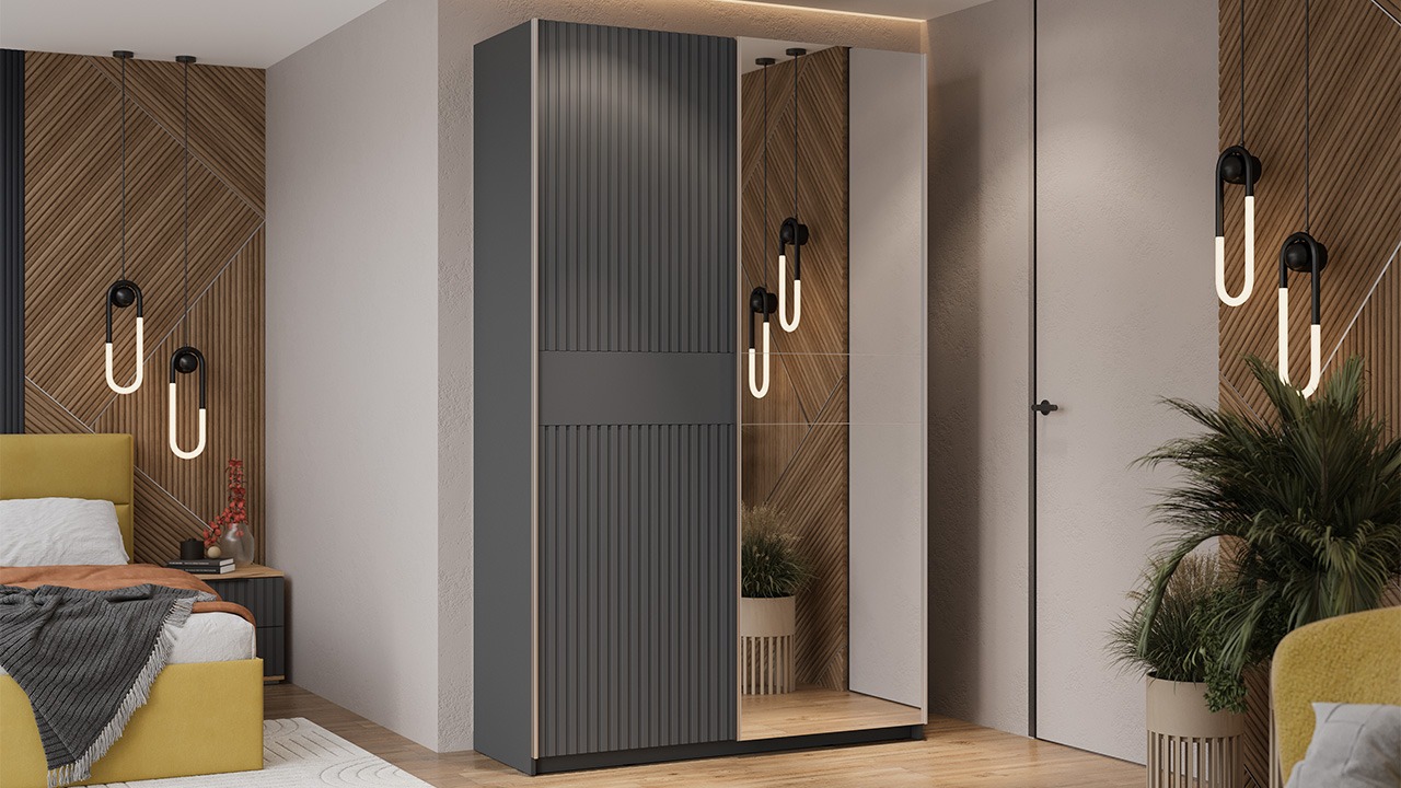 | Тип фасадаГлухой/Зеркало | Цвет ручкиСеребро | Цвет фасадаГрафит матовый |