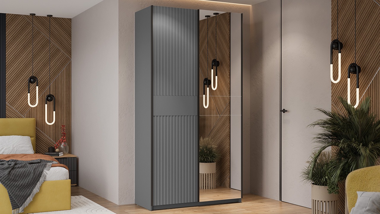 | Тип фасадаГлухой/Зеркало | Цвет ручкиЧерный | Цвет фасадаГрафит матовый |