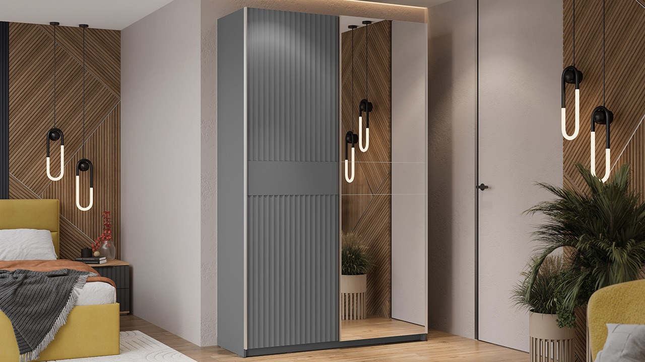 | Тип фасадаГлухой/Зеркало | Цвет ручкиСеребро | Цвет фасадаГрафит матовый |