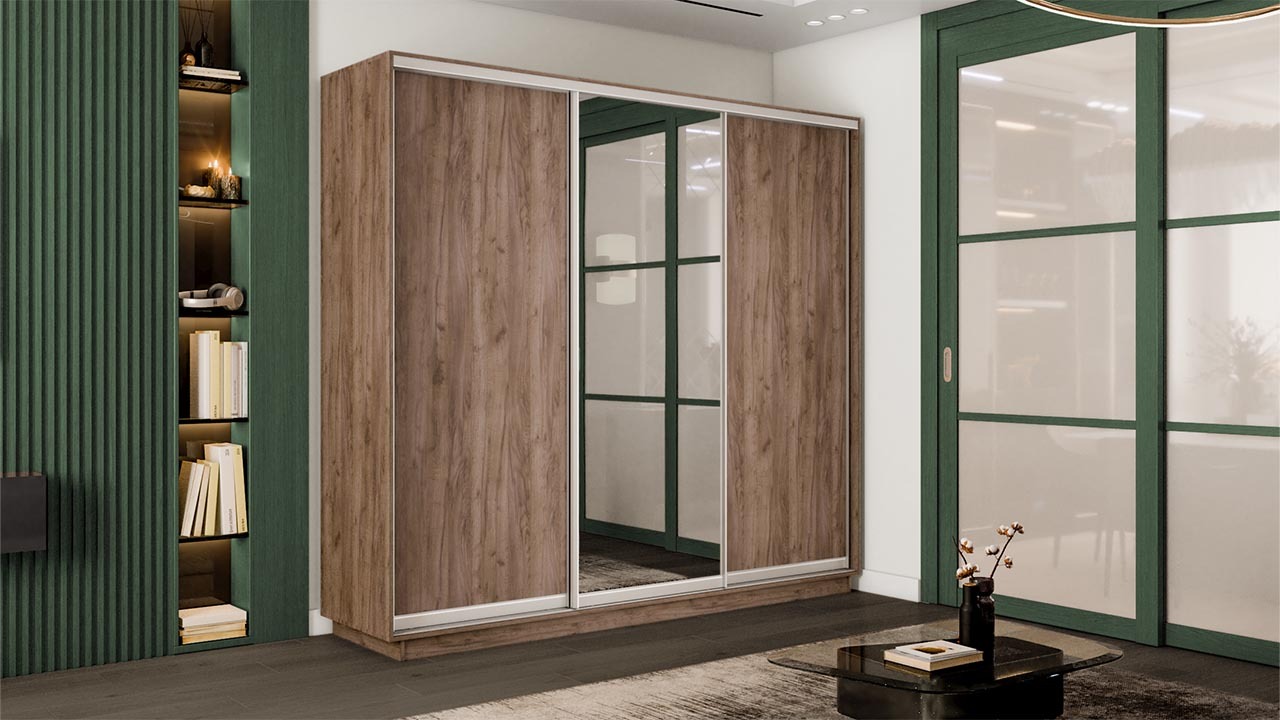 | Тип фасадаГлухой/Зеркало/Глухой | Цвет фасадаДуб Крафт Табачный | Материал каркасаЛДСП |