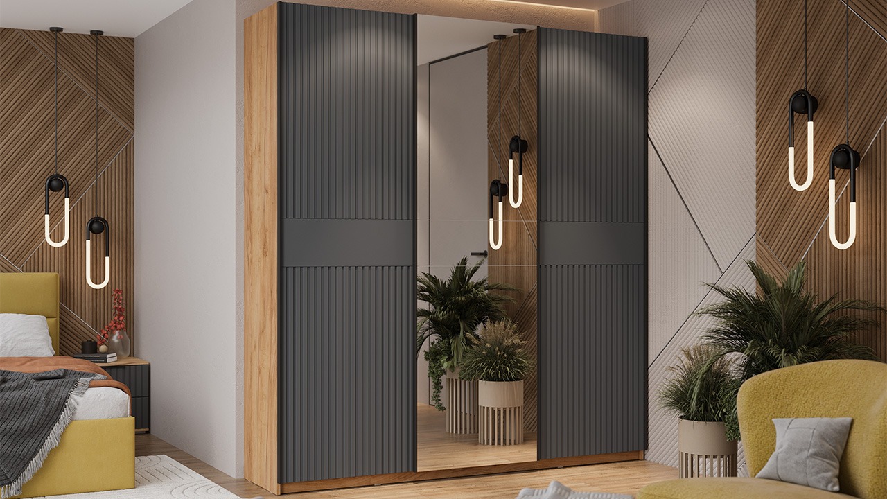 | Тип фасадаГлухой/Зеркало/Глухой | Цвет ручкиЧерный | Цвет фасадаГрафит матовый |