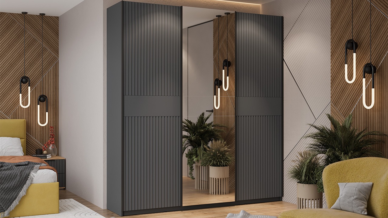 | Тип фасадаГлухой/Зеркало/Глухой | Цвет ручкиЧерный | Цвет фасадаГрафит матовый |