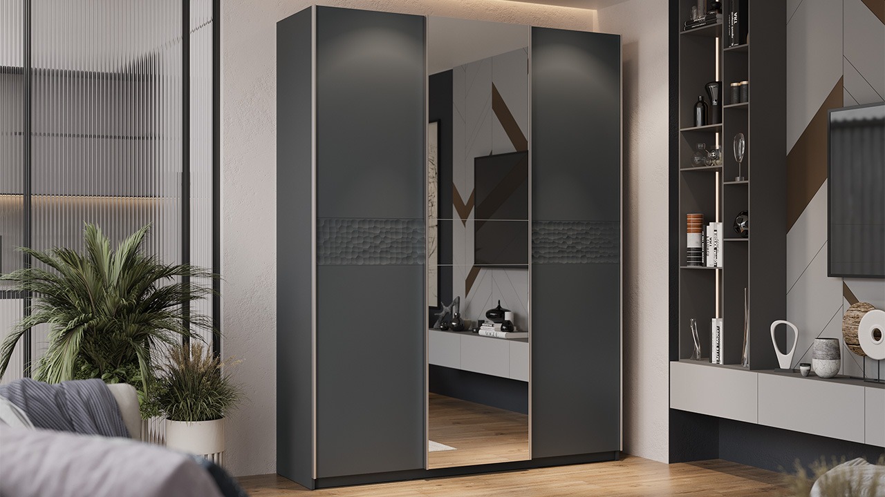 | Тип фасадаГлухой/Зеркало/Глухой | Цвет ручкиСеребро | Цвет фасадаСерый графит, Графит матовый |