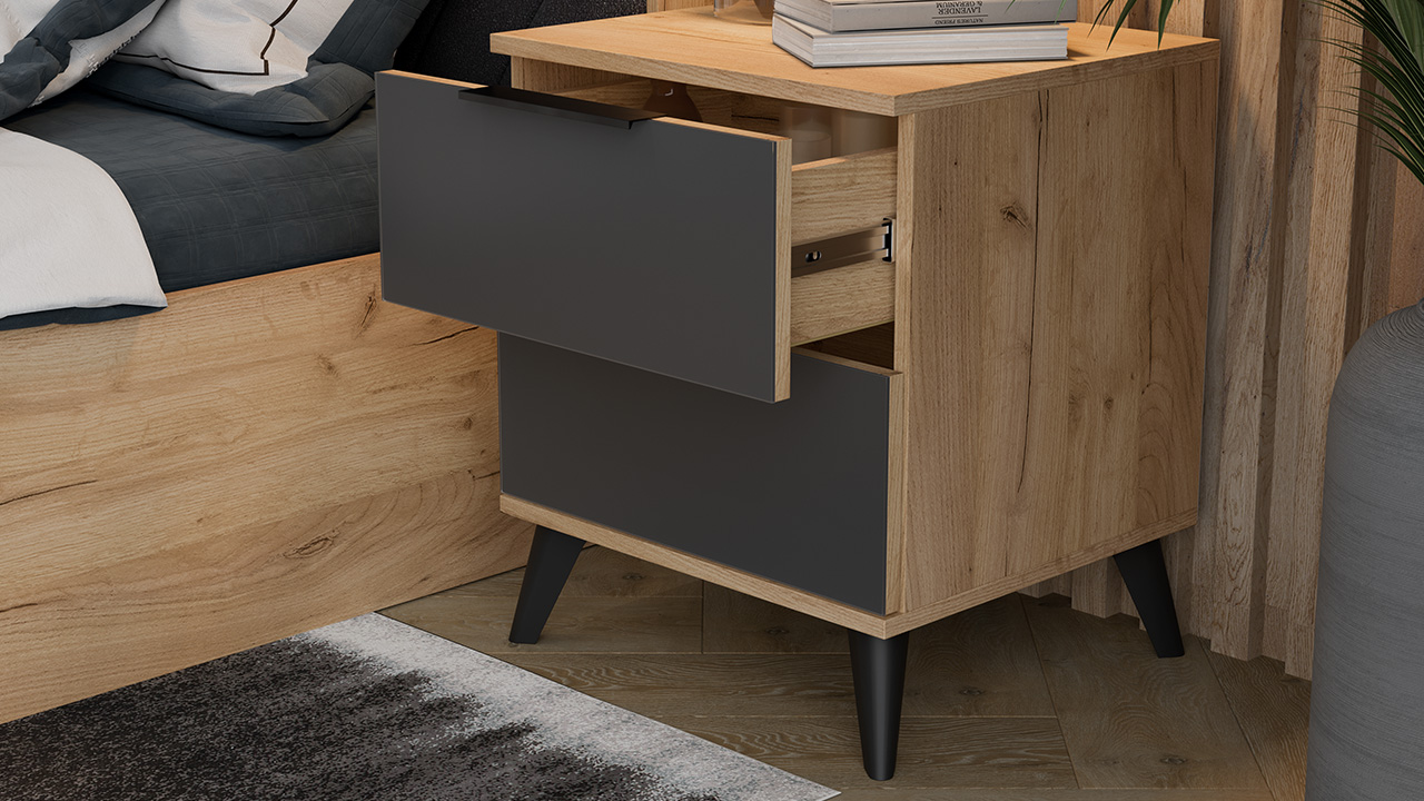 Тумба прикроватная «Джоли» с опорами Черный матовый, Дуб Крафт золотой, Графит матовый – 2 шт.