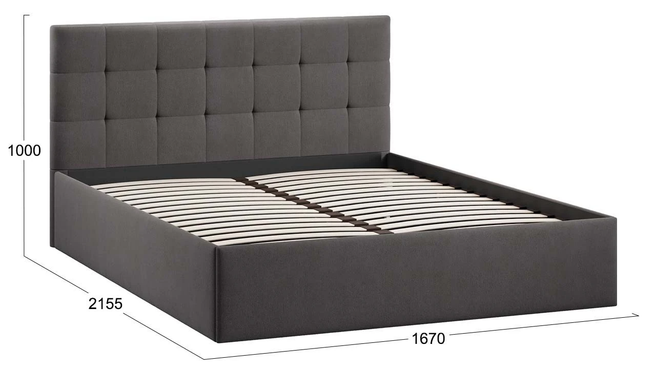 Кровать без ПМ «Джоли» 1600 Тип 1 (без подъемного механизма) Велюр Графит – 1 шт.