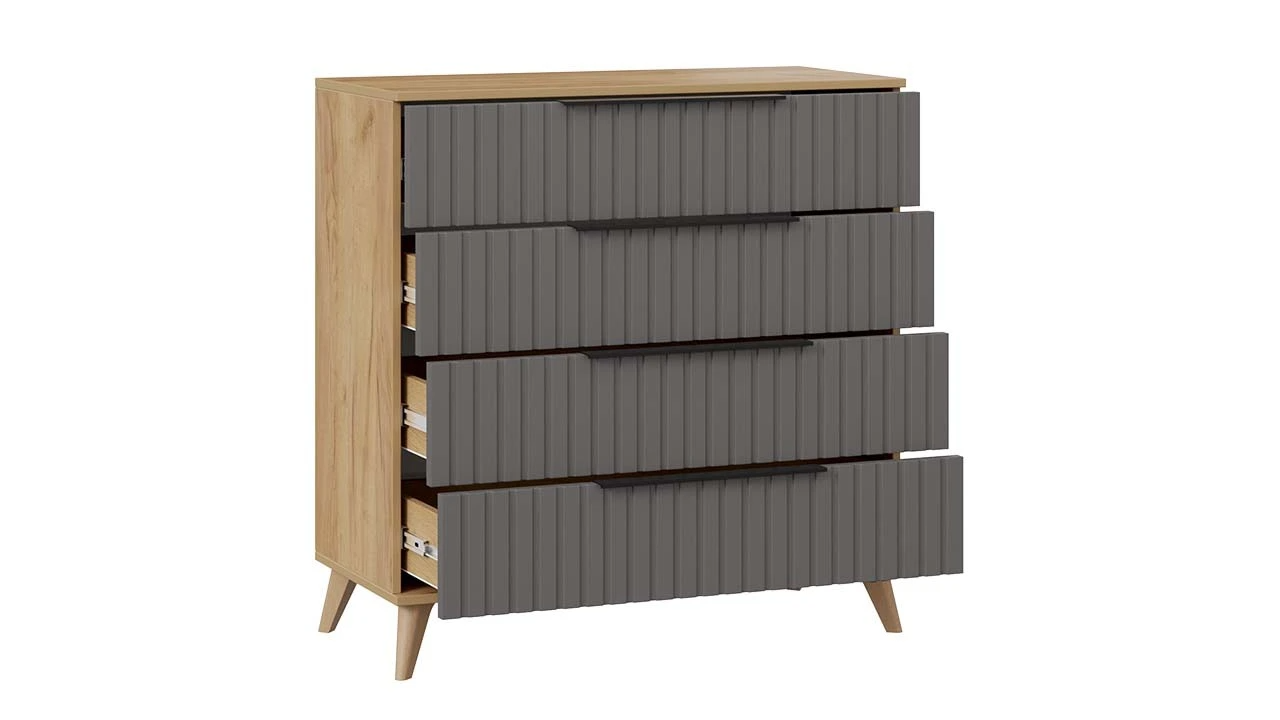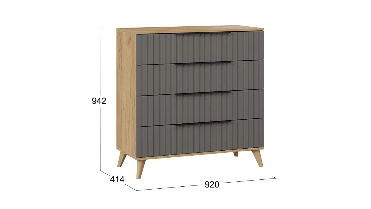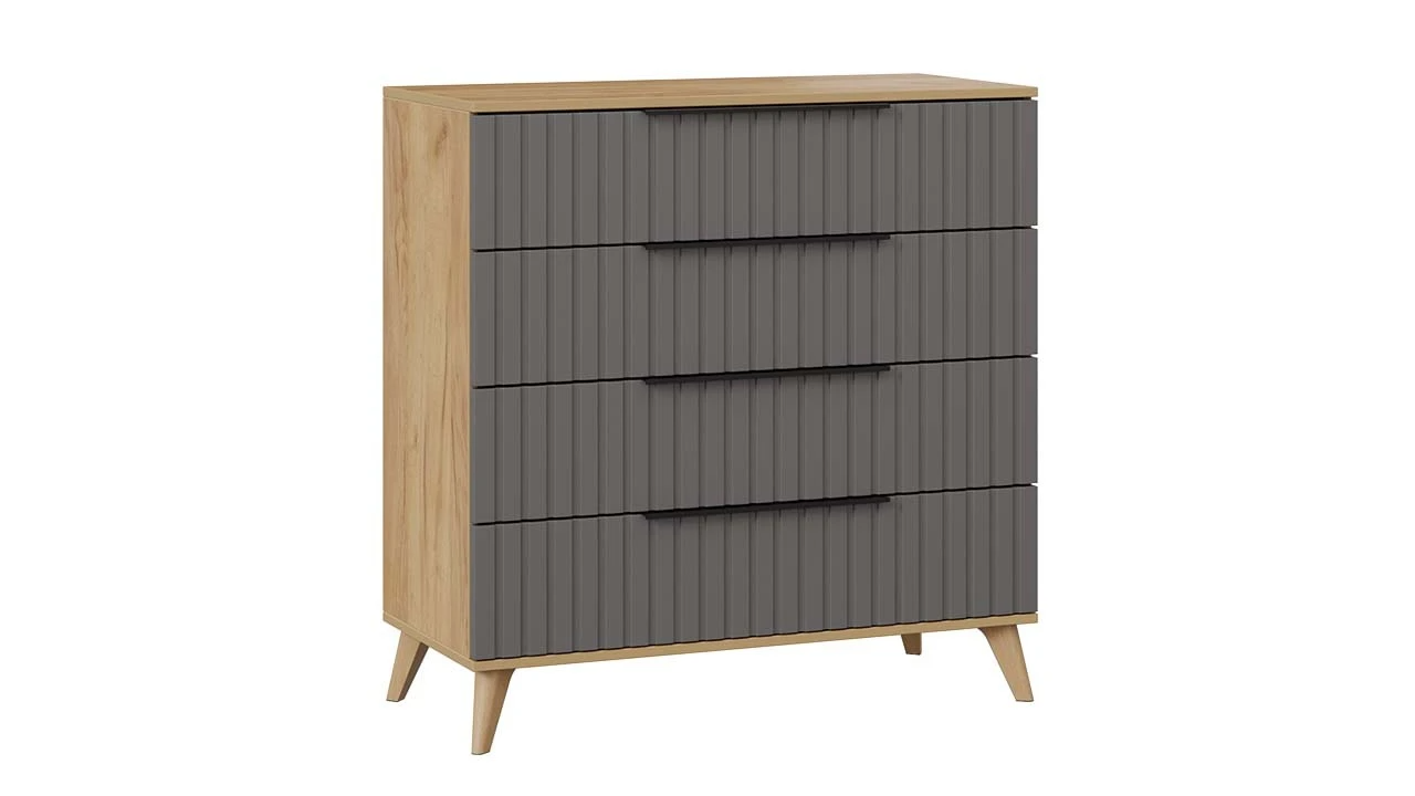 Комод «Хилтон» с опорами Бук матовый, Дуб Крафт золотой, Графит матовый – 1 шт.