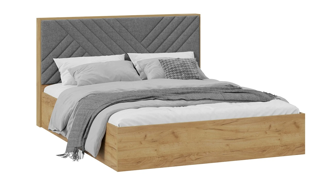 Кровать без ПМ «Хилтон» 1600 Тип 1 (без подъемного механизма) Дуб Крафт золотой, Велюр Серый – 1 шт.