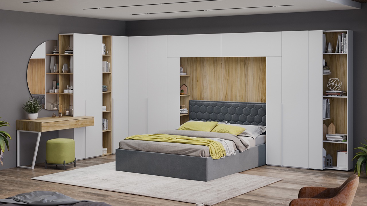 Модульность Одним из ключевых преимуществ набора модульной мебели является его модульность. Коллекция представляет собой сквозную концепцию, где все модули могут быть использованы для обустройства интерьера спальни, гостиной, детской или прихожей. Счастливый обладатель данной коллекции может создавать различные композиции и сочетания, в зависимости от своих предпочтений и потребностей