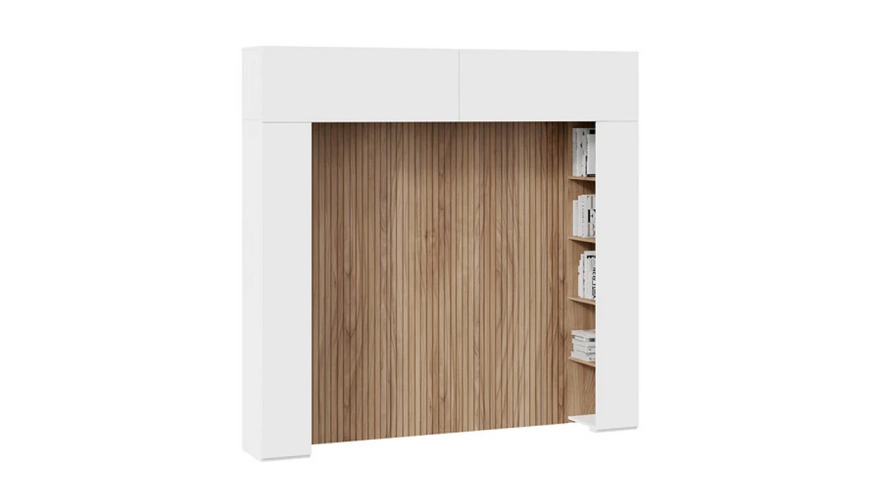 Стеллаж торцевой «Порто» - ТД-393.07.26 Белый Жемчуг, Яблоня Беллуно, Белый софт – 1 шт.