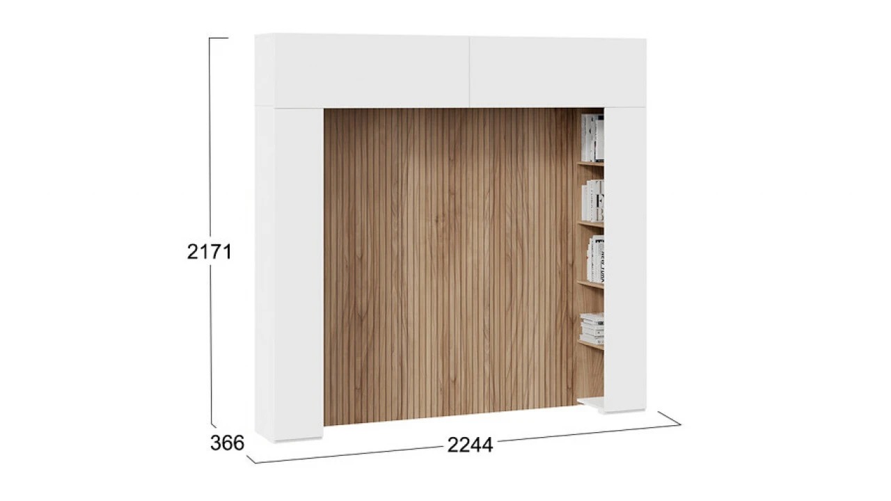 - Шкаф навесной Порто (366) со стеллажами и декоративными панелями - СМ-393.21.022-23 Белый Жемчуг, Яблоня Беллуно, Белый софт – 1 шт.