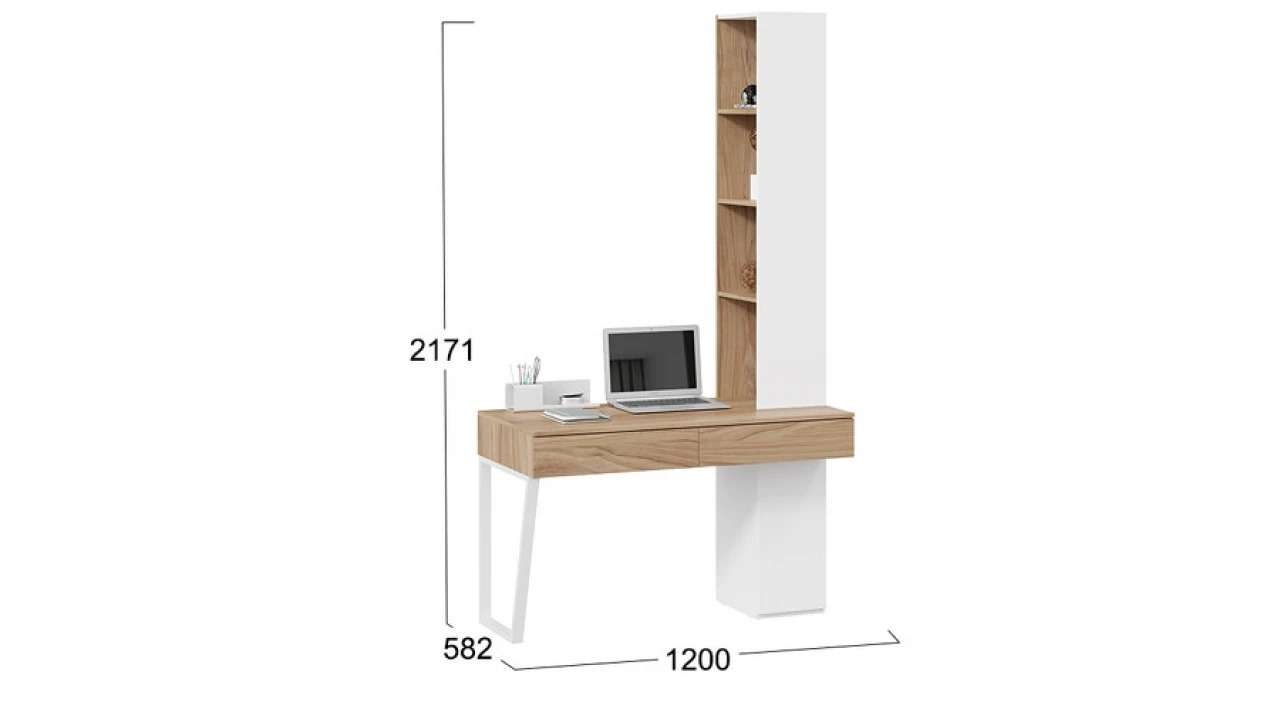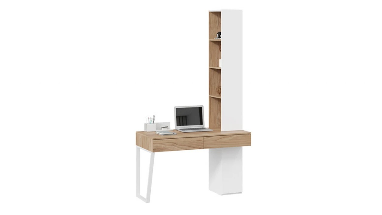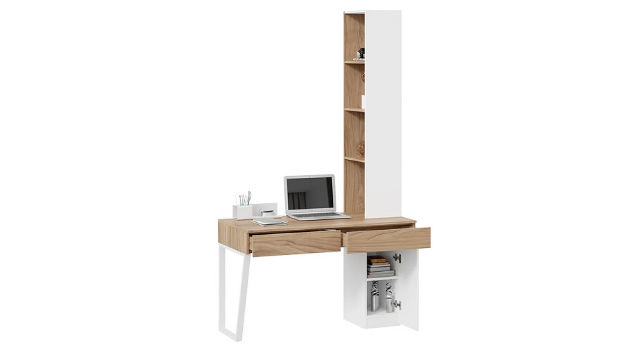 - Стол письменный (366/580) со шкафом комбинированным (настольным) «Порто» - СМ-393.15.012 Белый Жемчуг, Яблоня Беллуно, Белый софт – 1 шт.